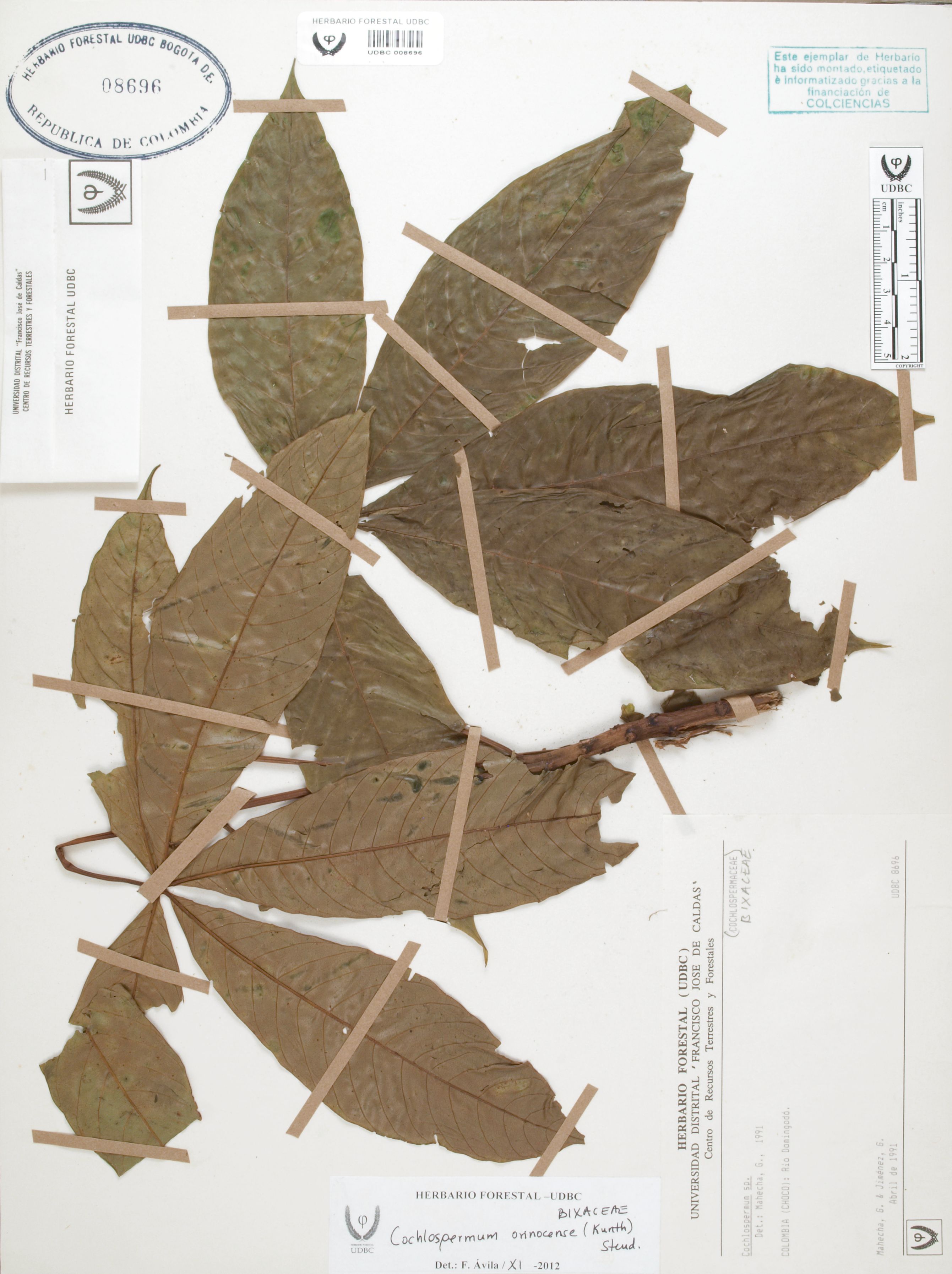 Fotografía del ejemplar Mahecha, G., determinado como Cochlospermum orinocense en el año 2012