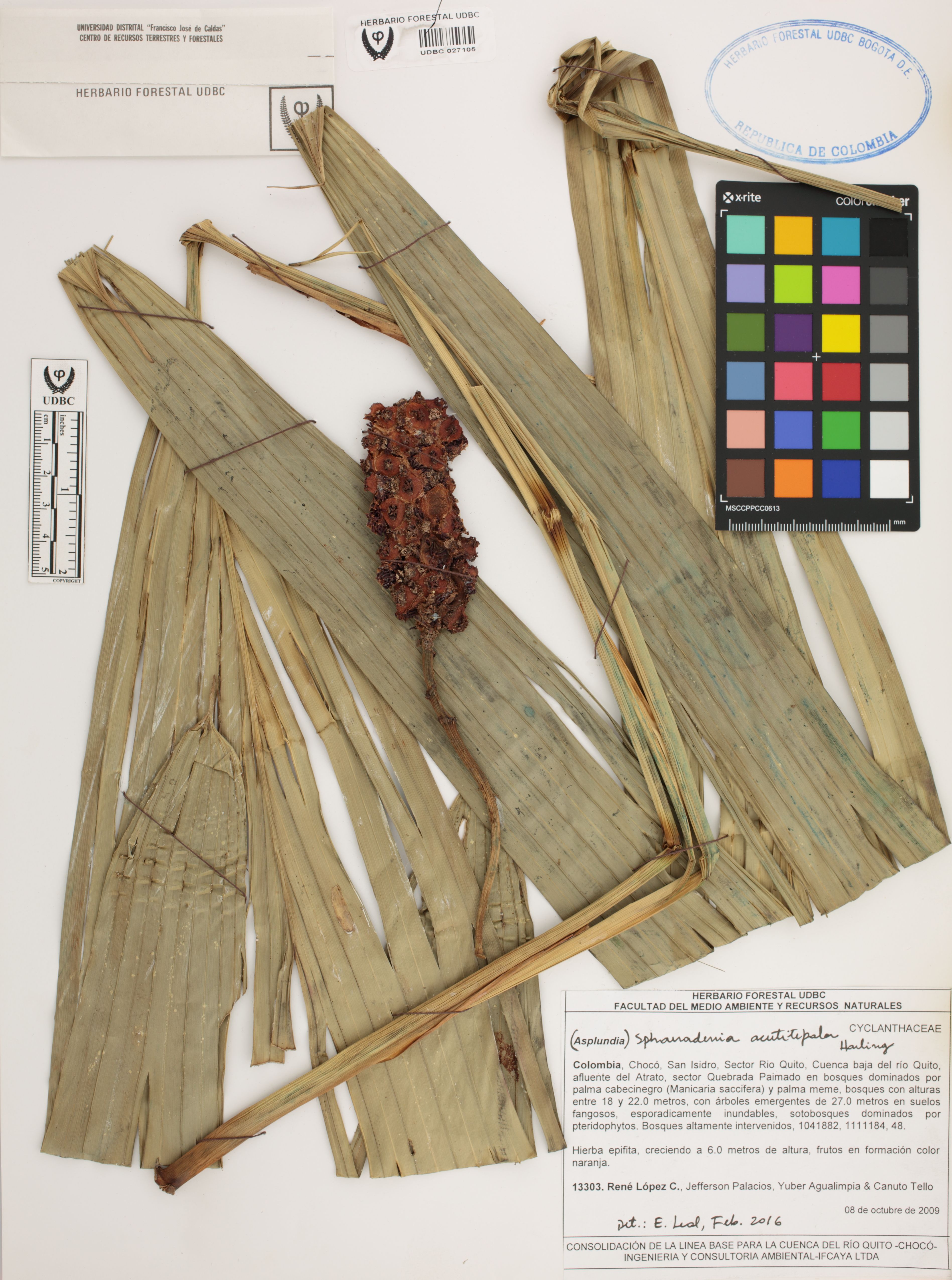Fotografía del ejemplar López, R. 13303, determinado como Sphaeradenia acutitepala en el año 2016