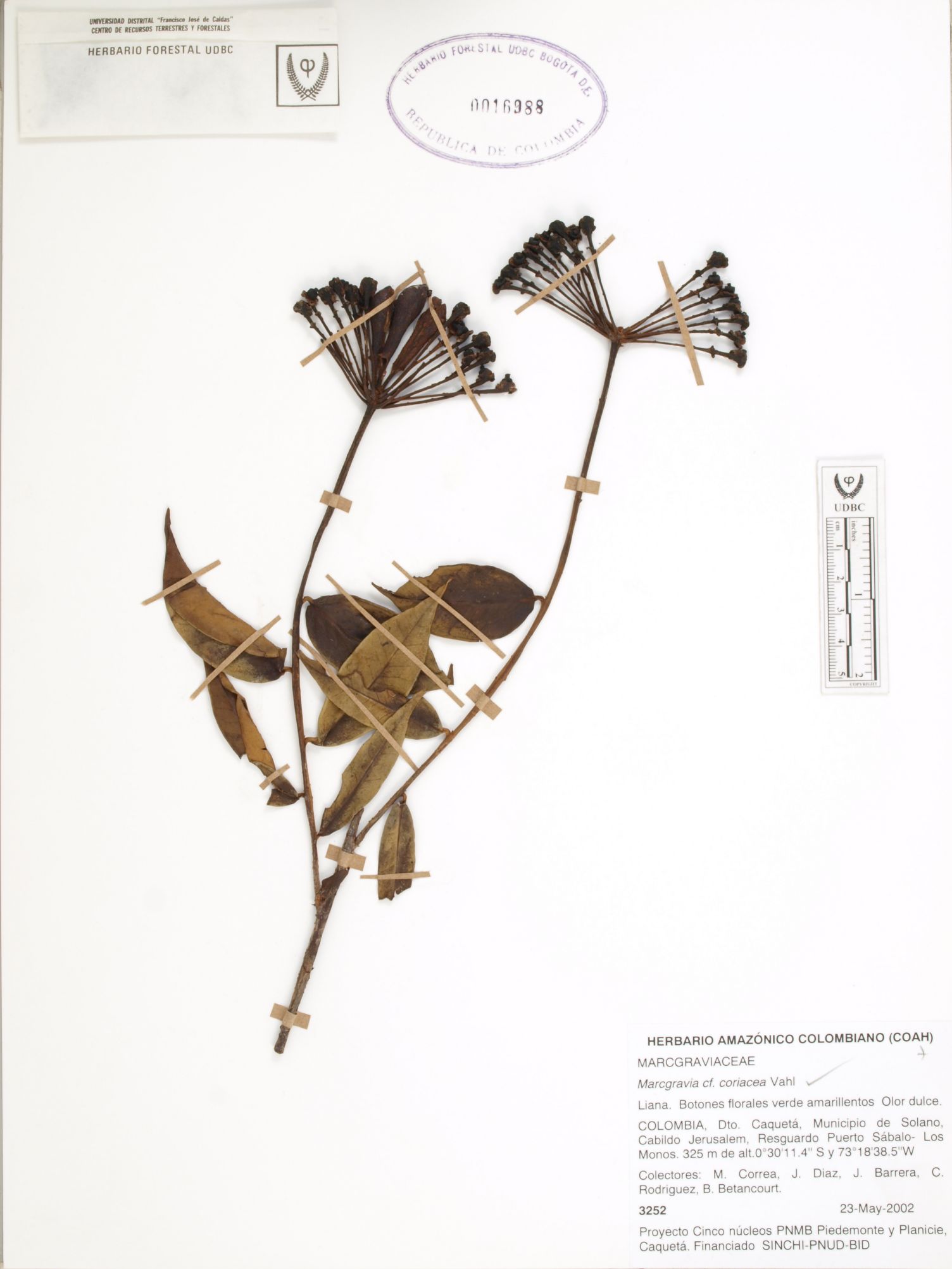 | dc.description | Fotografía del ejemplar Correa, M. 3252, determinado como Marcgravia coriacea | |