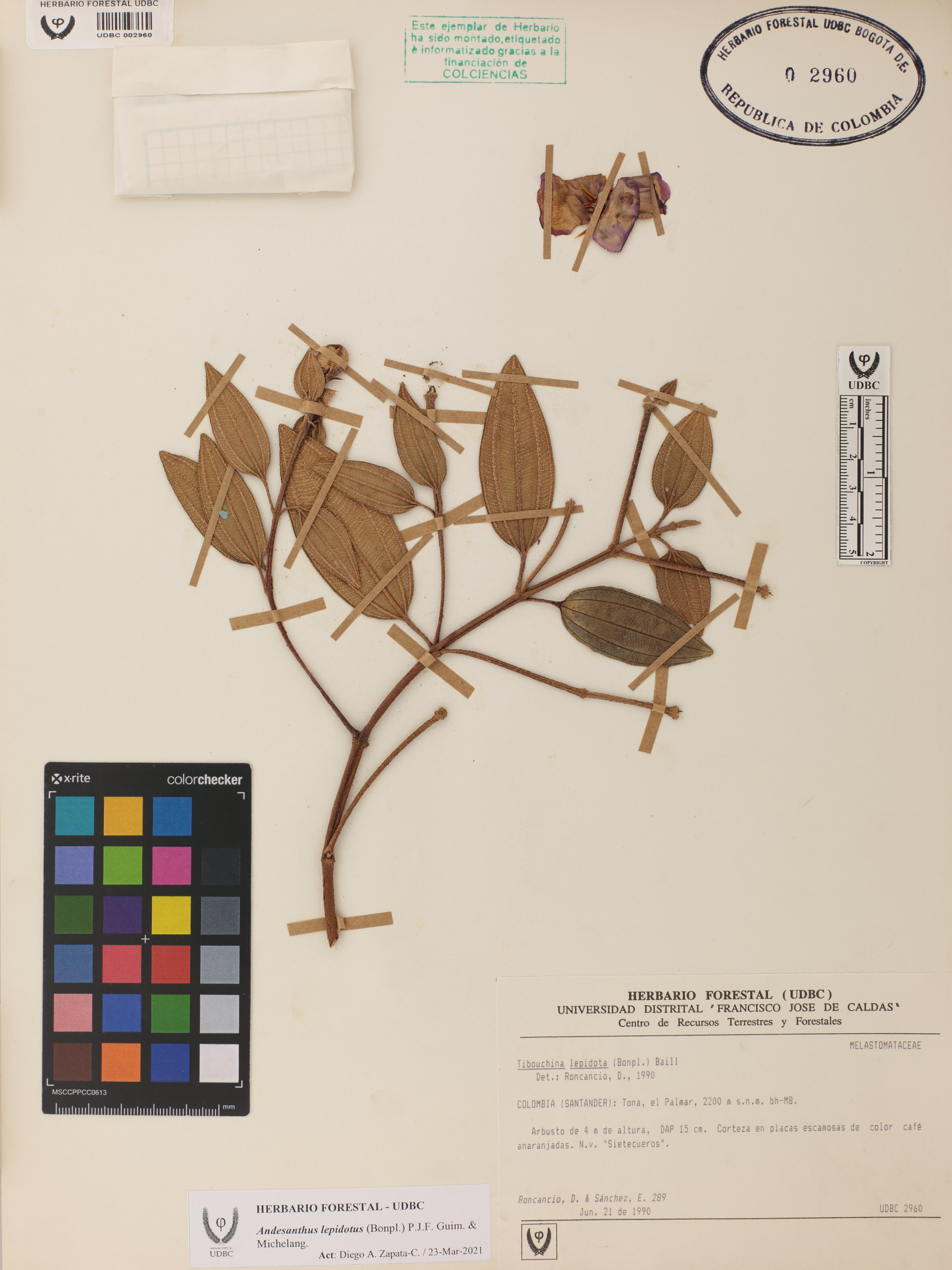 Fotografía del ejemplar Roncancio, D. 289, determinado como Andesanthus lepidotus en el año 1990