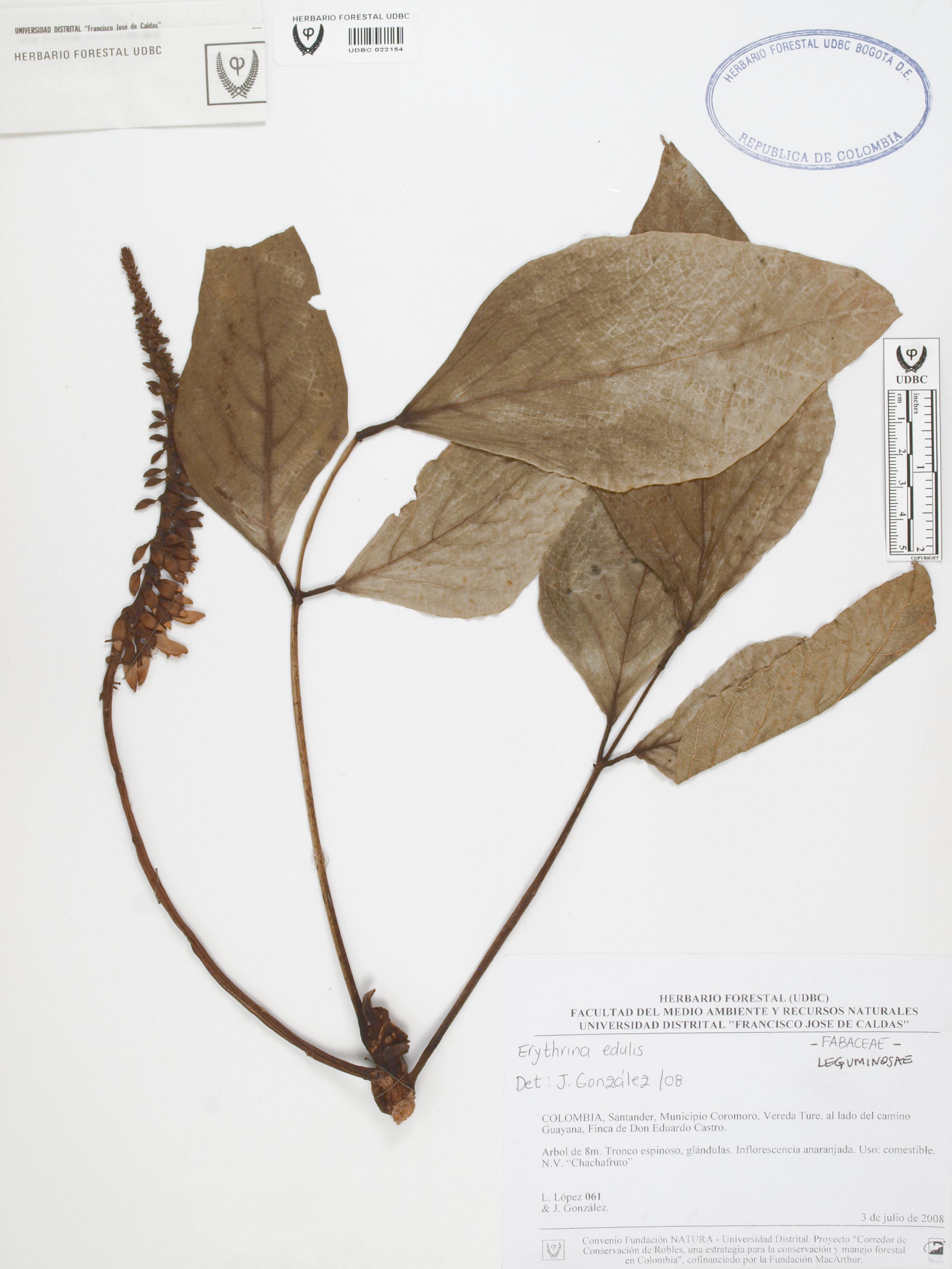 Fotografía del ejemplar López, L. 61, determinado como Erythrina edulis en el año 2008