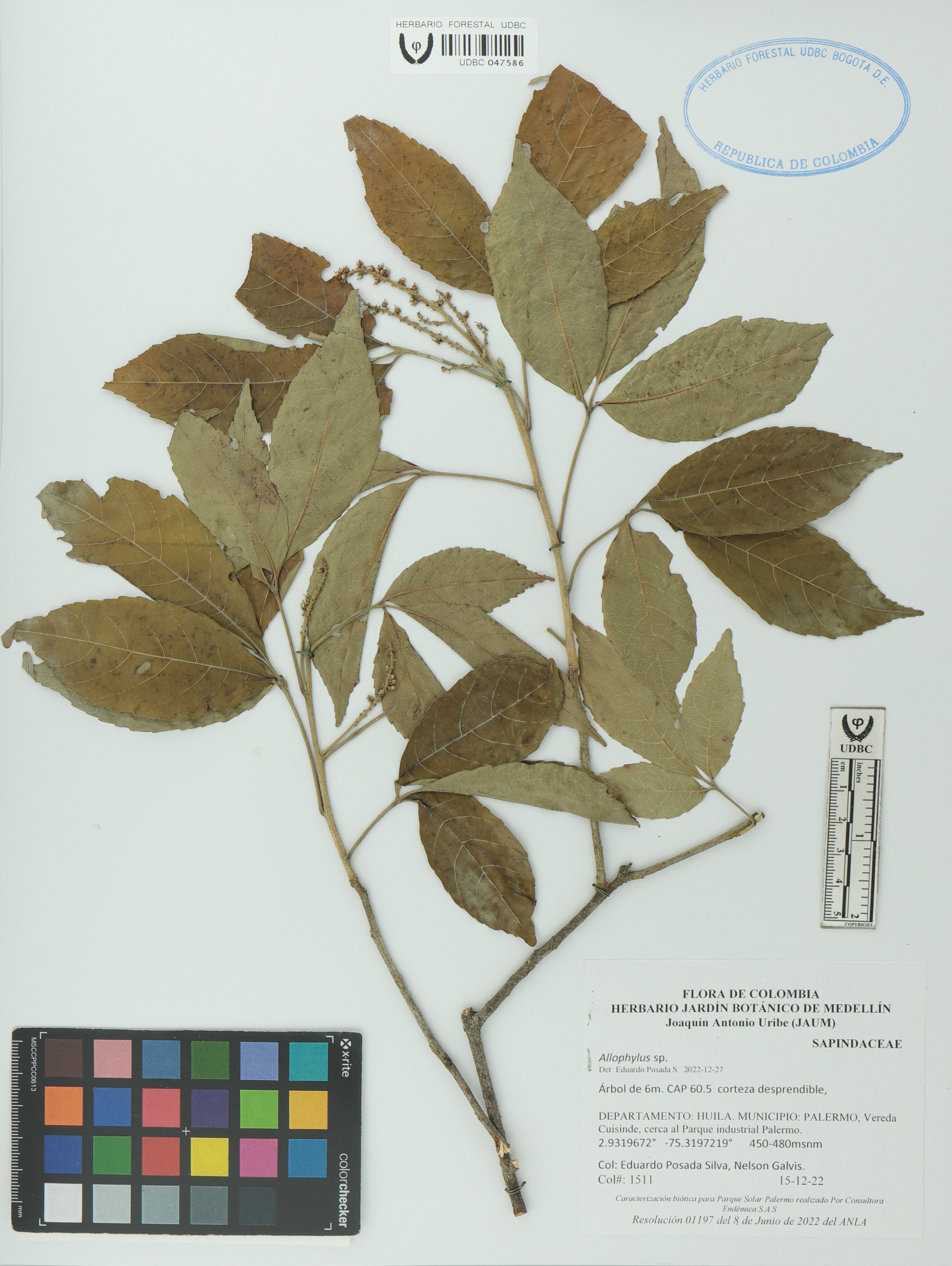 | dc.description | Fotografía del ejemplar Posada-S., E. 1511, determinado como Allophylus sp. en el año 2022 | |