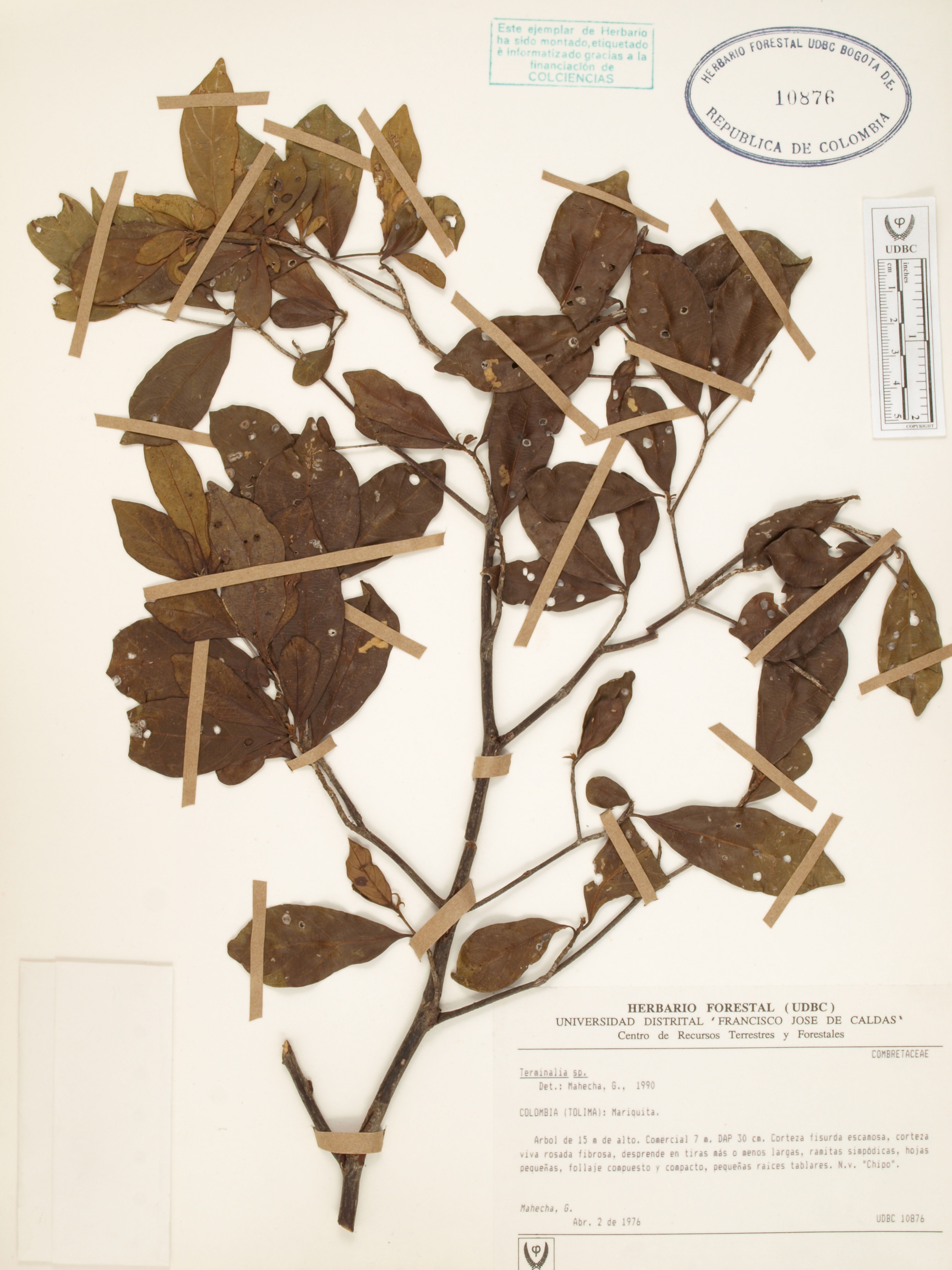 Fotografía del ejemplar Mahecha, G., determinado como Terminalia sp.