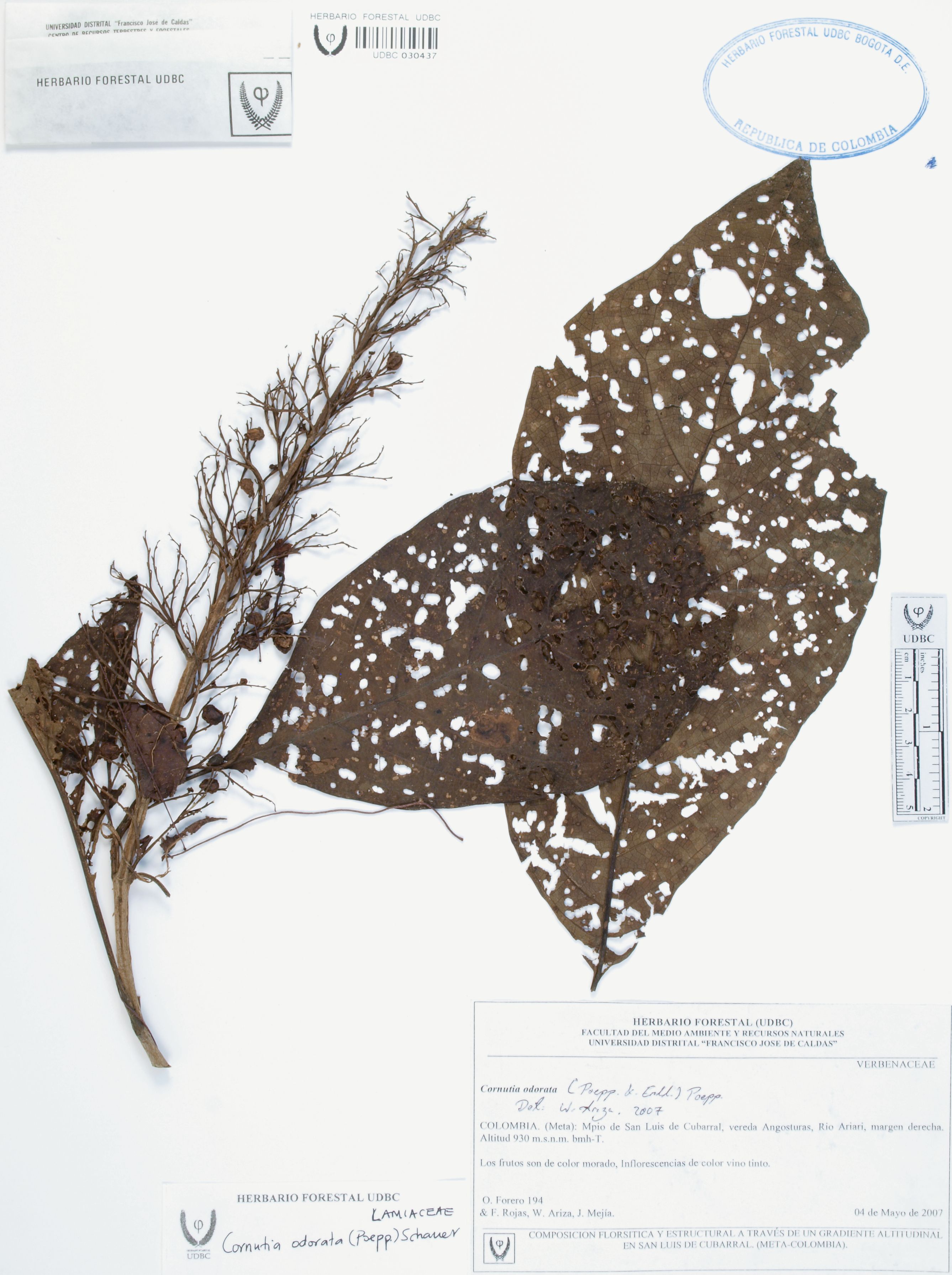 Fotografía del ejemplar Forero, O. 194, determinado como Cornutia odorata en el año 2007