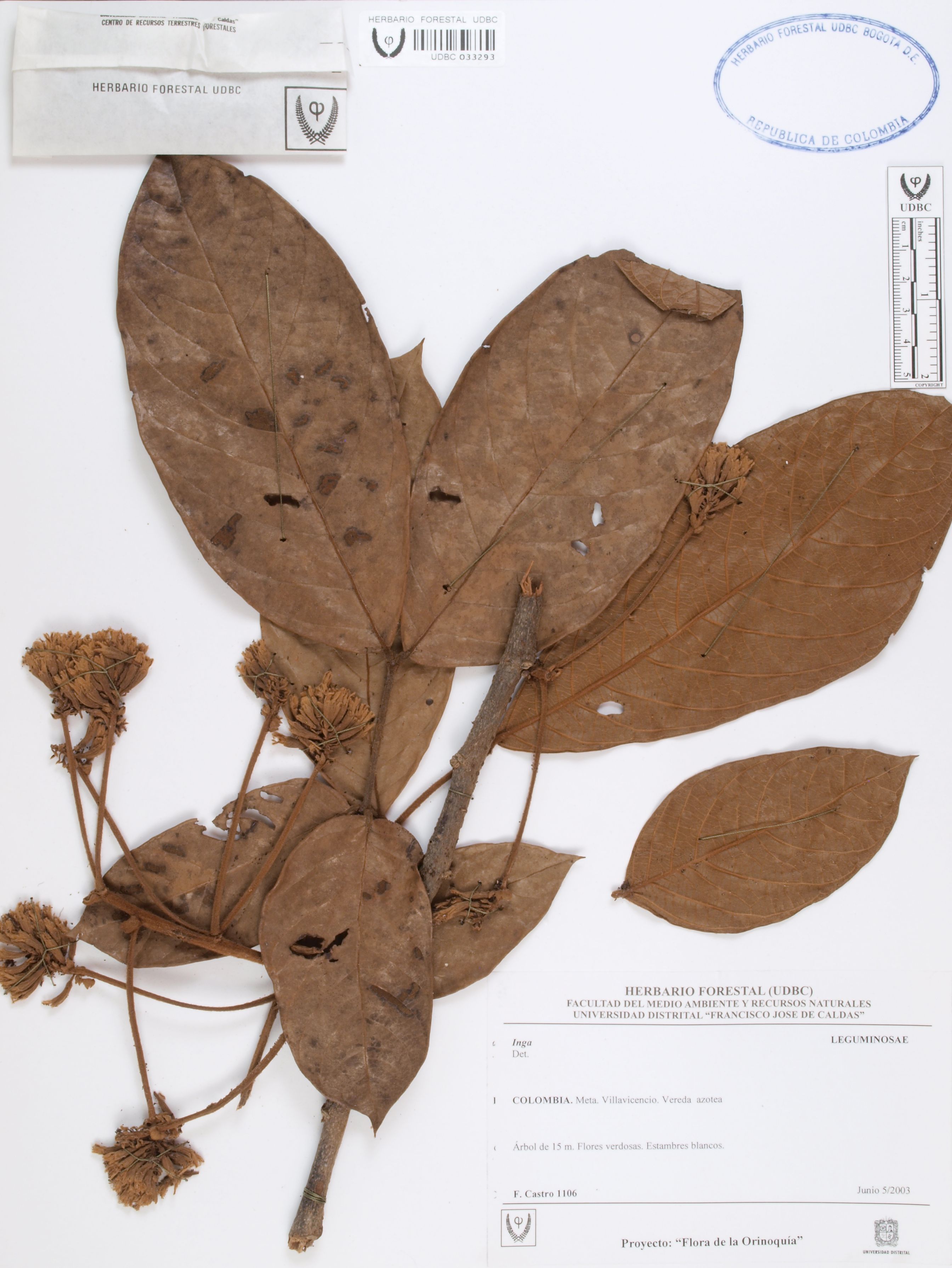 | dc.description | Fotografía del ejemplar Castro, F. 1106, determinado como Inga sp. | |