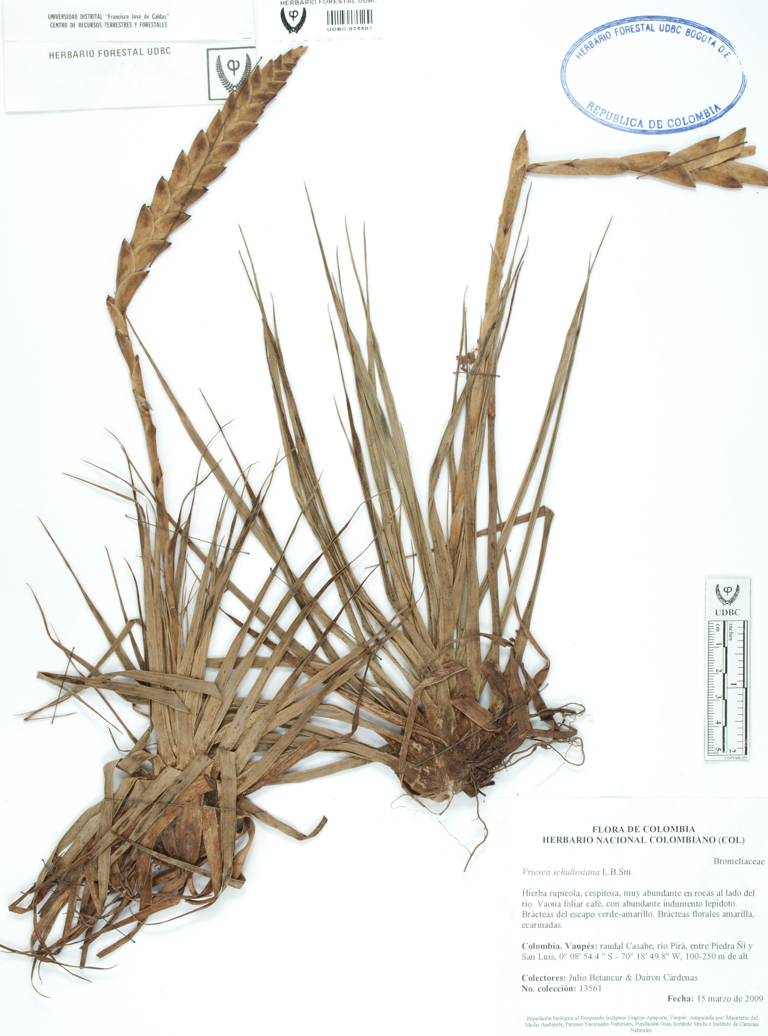 Fotografía del ejemplar Betancur, J. 13561, determinado como Vriesea schultesiana
