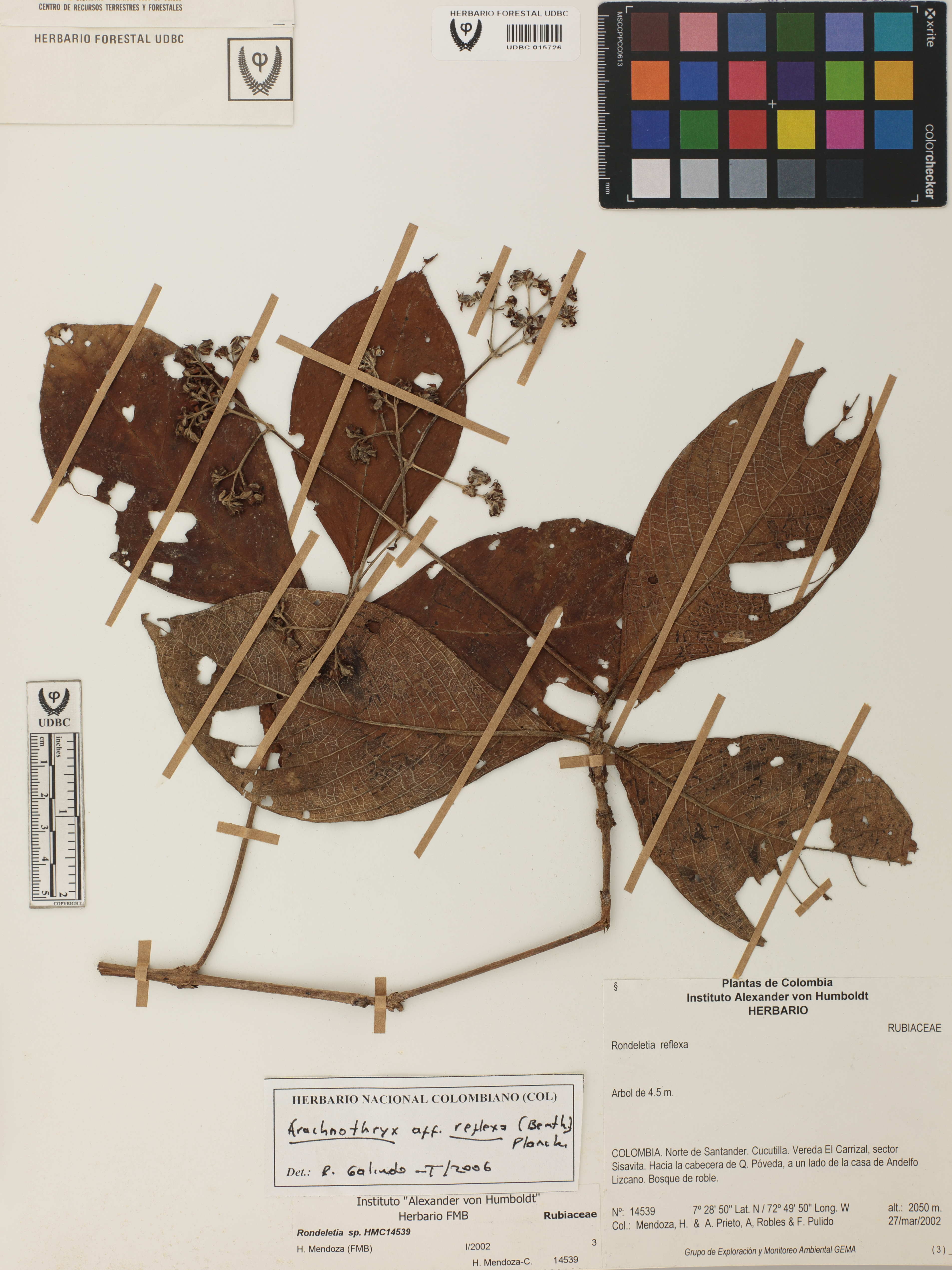 Fotografía del ejemplar Mendoza, H. 14539, determinado como Arachnothryx reflexa en el año 2006