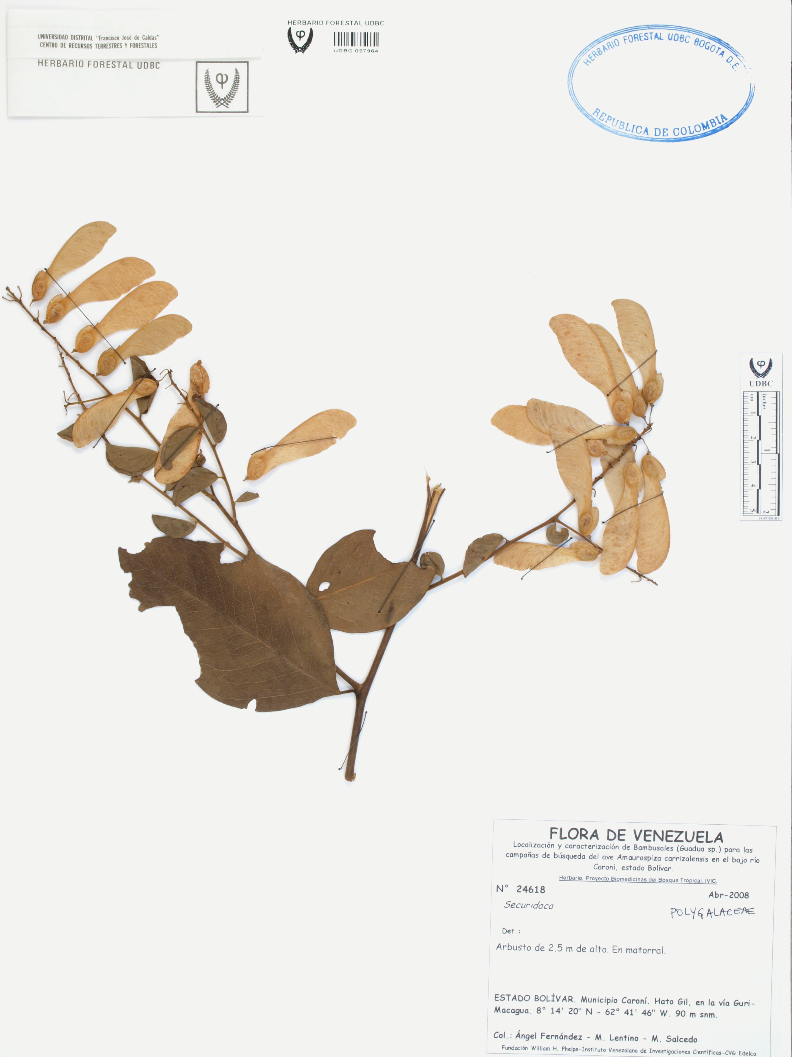Fotografía del ejemplar Fernández, A. 24618, determinado como Securidaca sp.