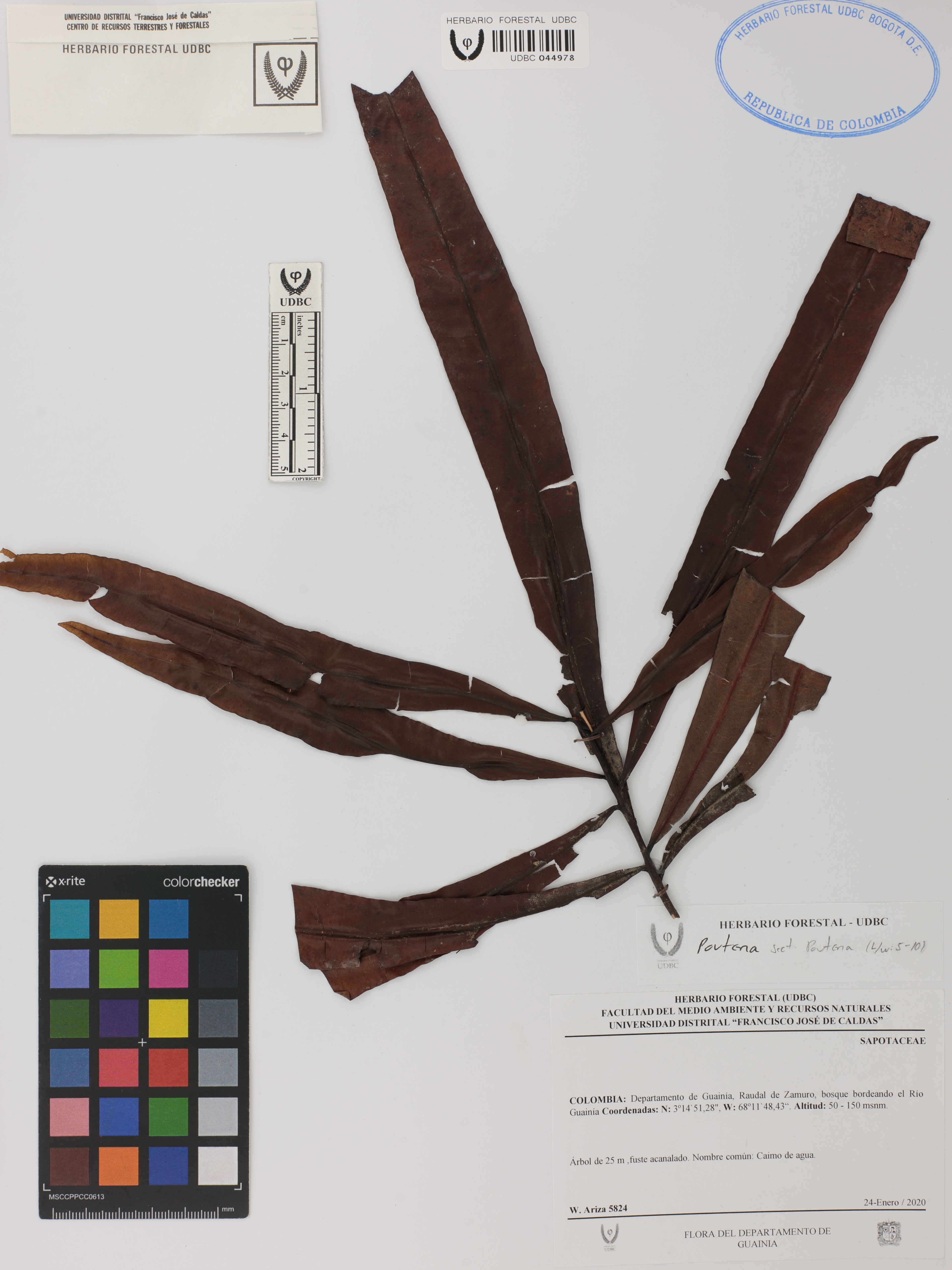 Fotografía del ejemplar Ariza-Cortés, W. 5824, determinado como Pouteria sp.