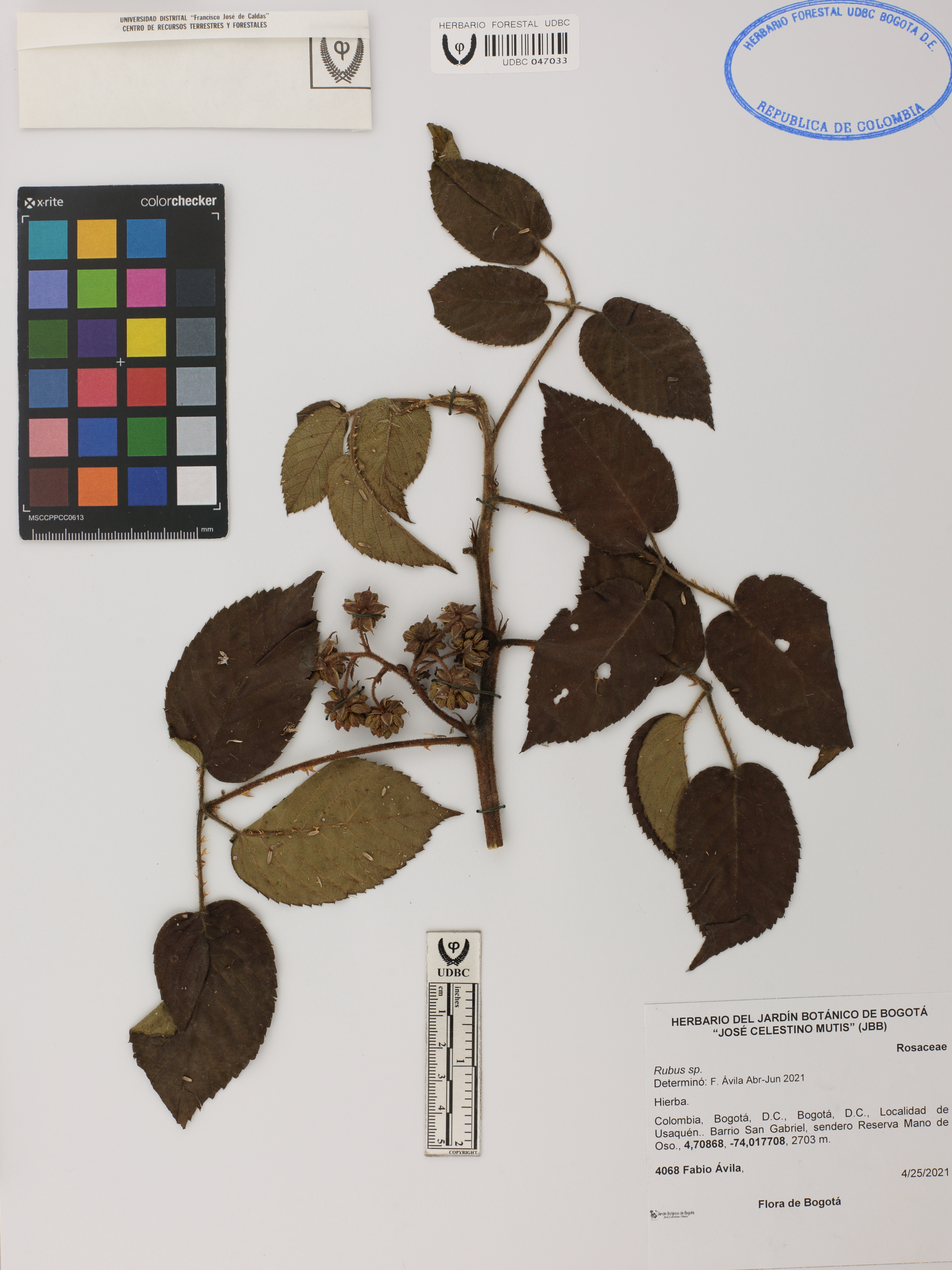 Fotografía del ejemplar Ávila, F. 4068, determinado como Rubus sp. en el año 2021