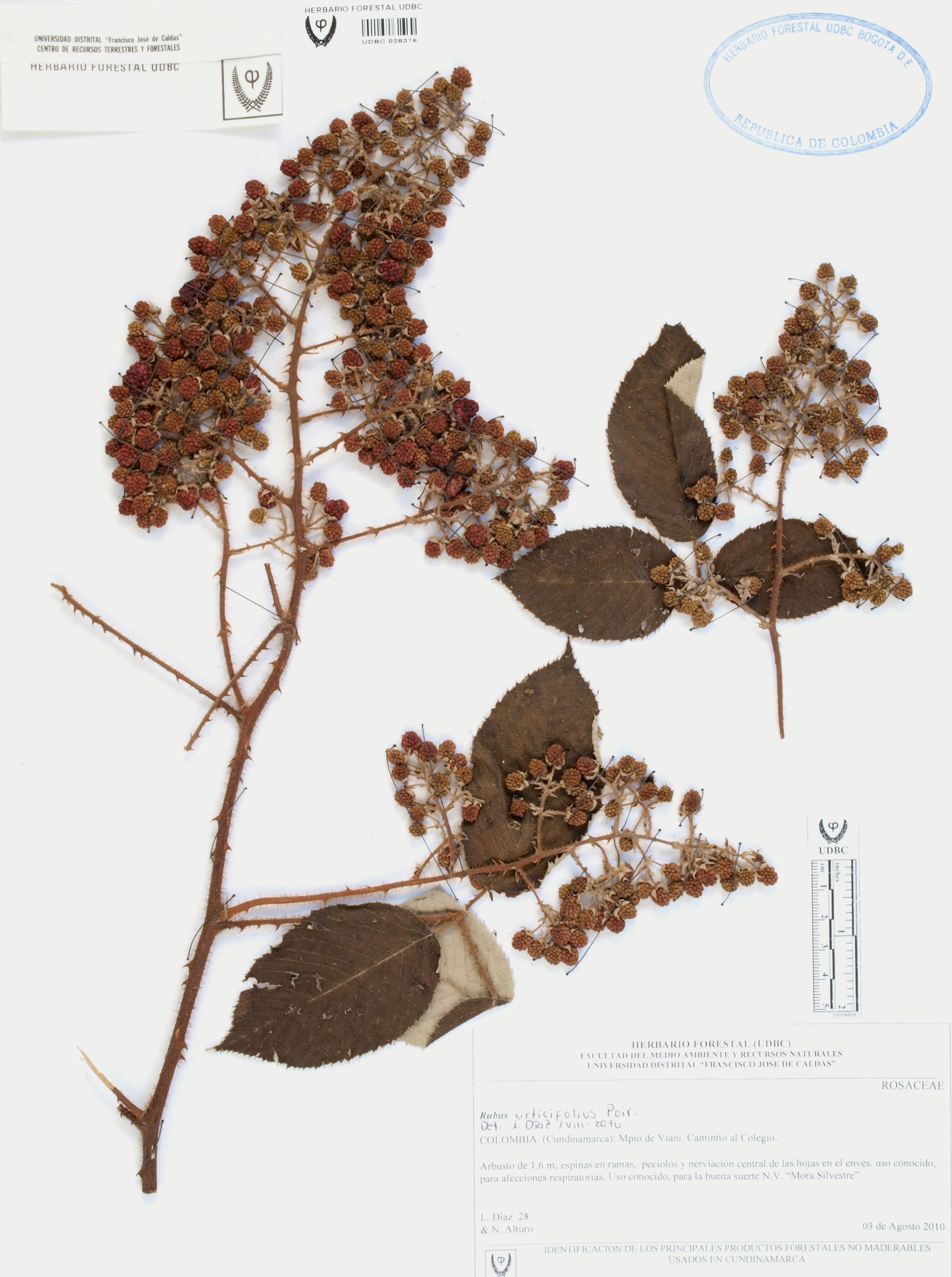Fotografía del ejemplar Díaz, L. 28, determinado como Rubus urticifolius