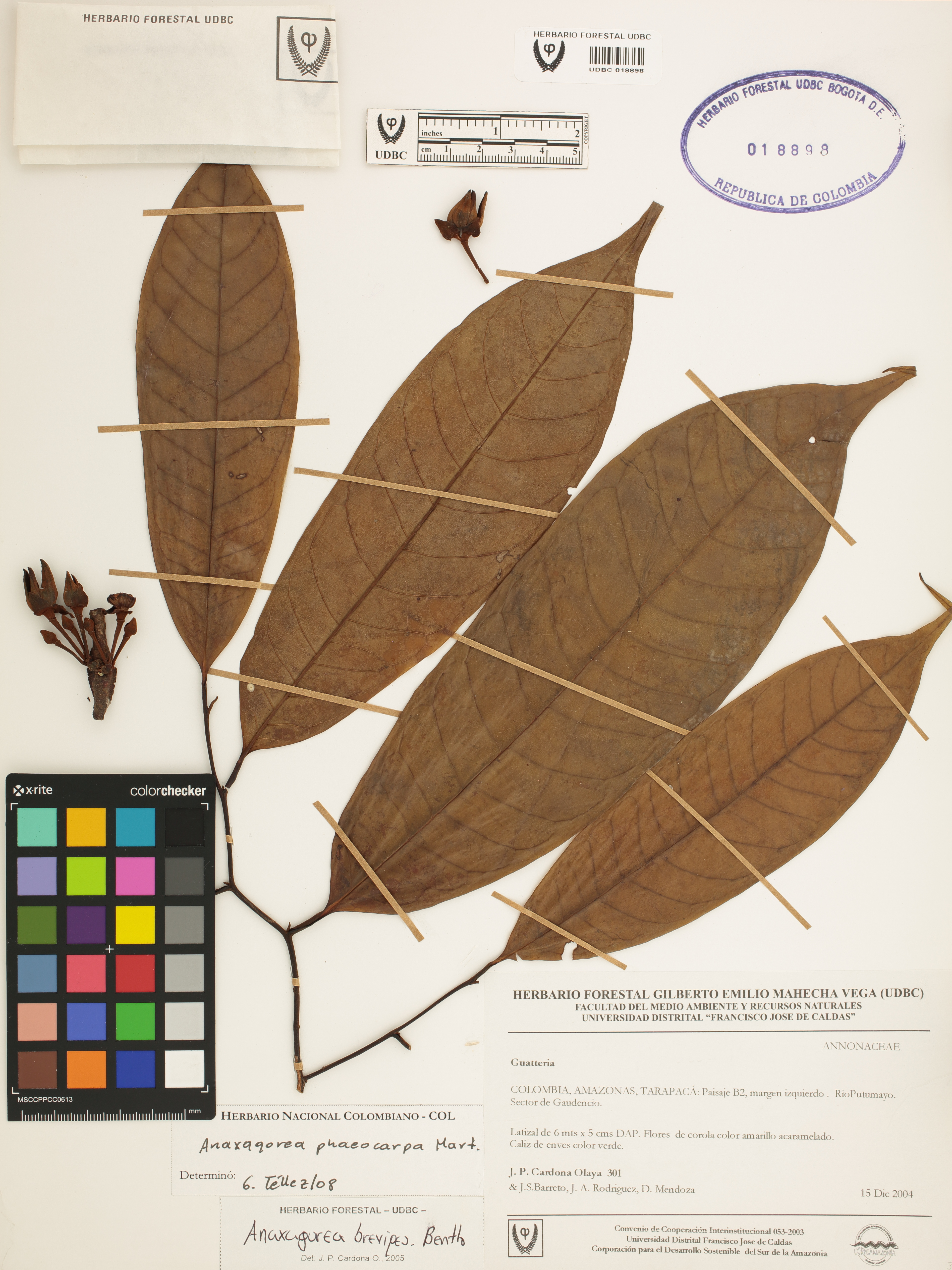 Fotografía del ejemplar Cardona, J. 301, determinado como Anaxagorea phaeocarpa en el año 2008