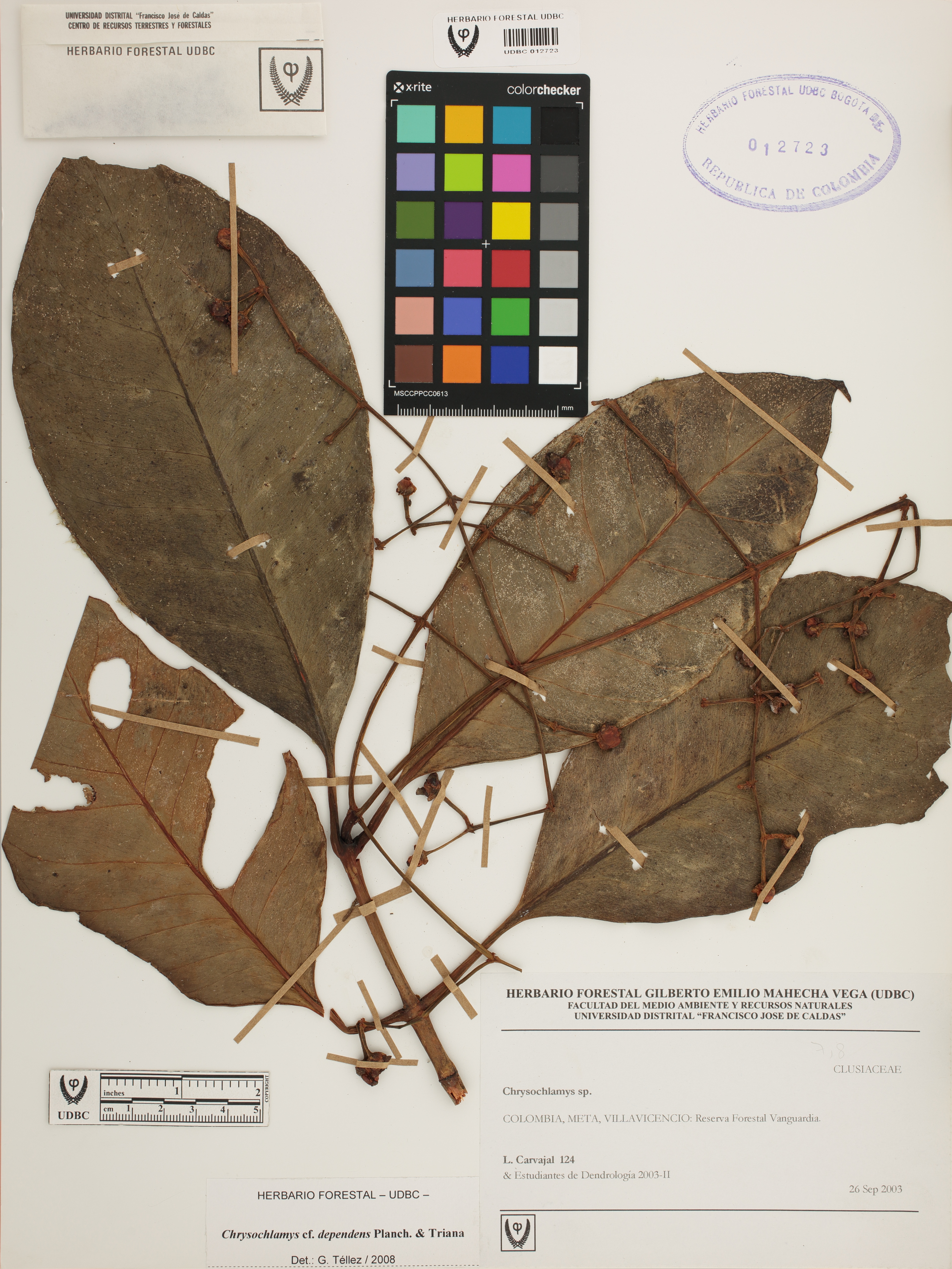 Fotografía del ejemplar Carvajal, L. 124, determinado como Chrysochlamys dependens en el año 2008