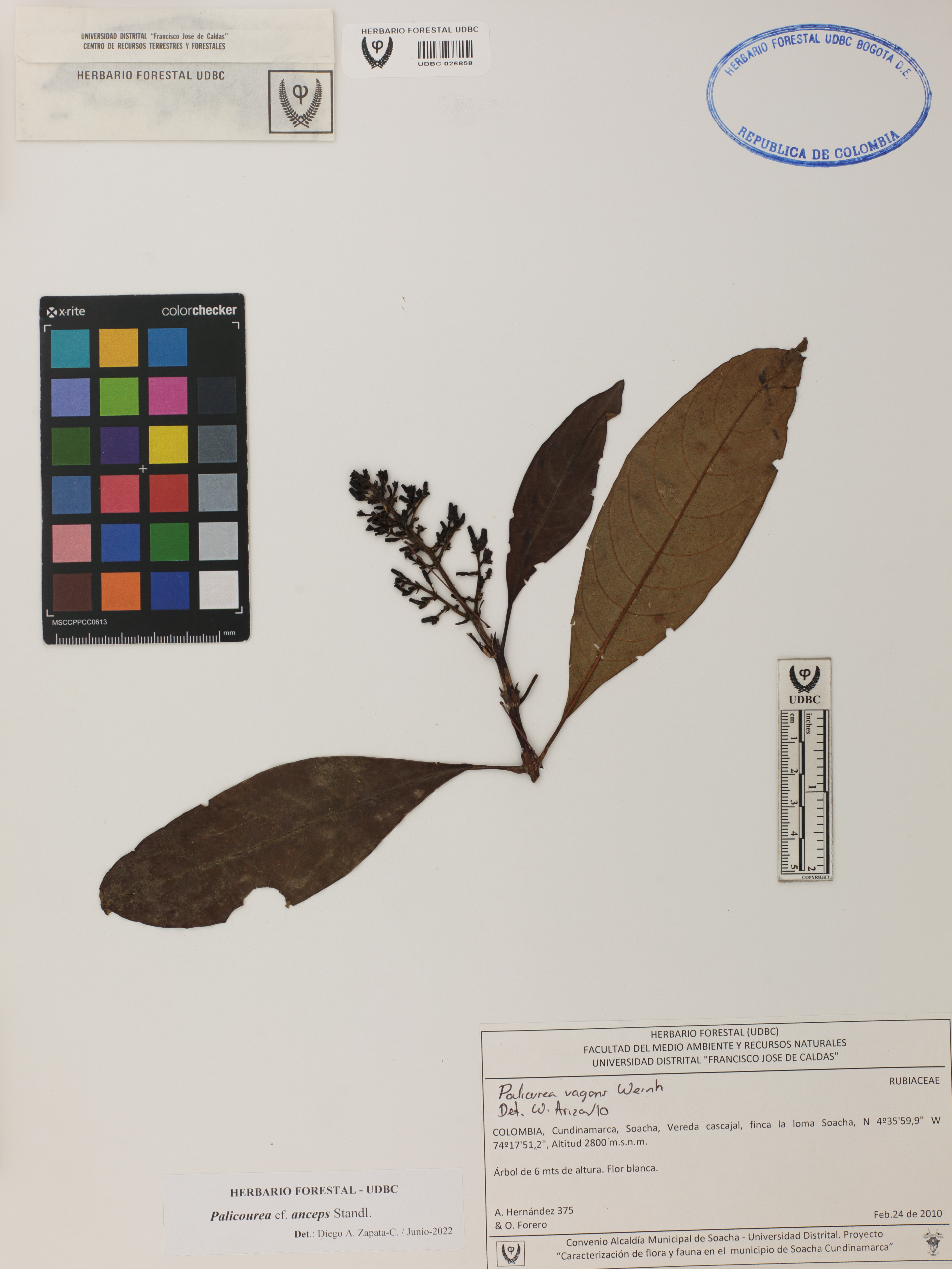 Fotografía del ejemplar Hernández, A. 375, determinado como Palicourea anceps en el año 2022