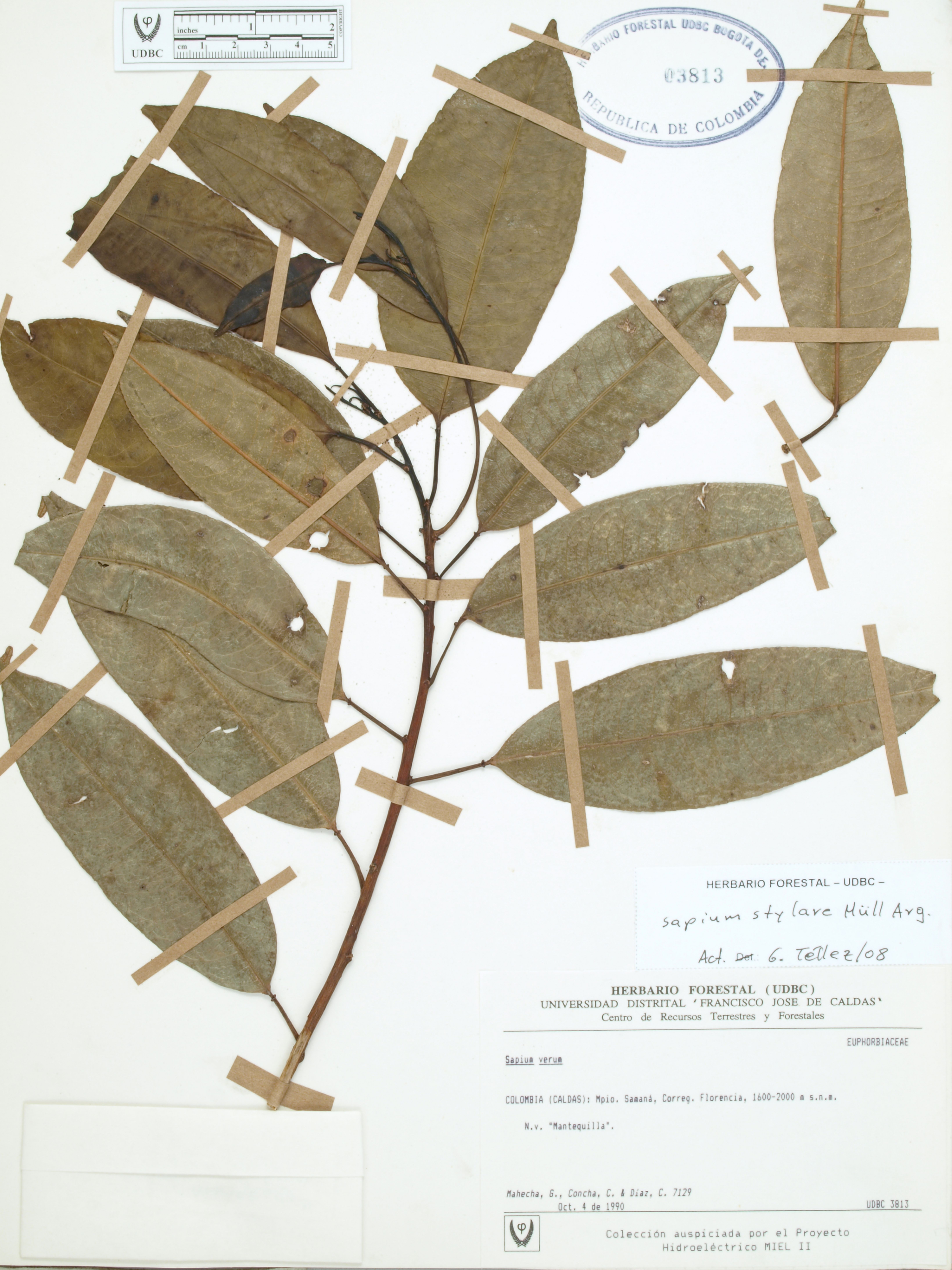 | dc.description | Fotografía del ejemplar Mahecha, G. 7129, determinado como Sapium stylare en el año 2008 | |
