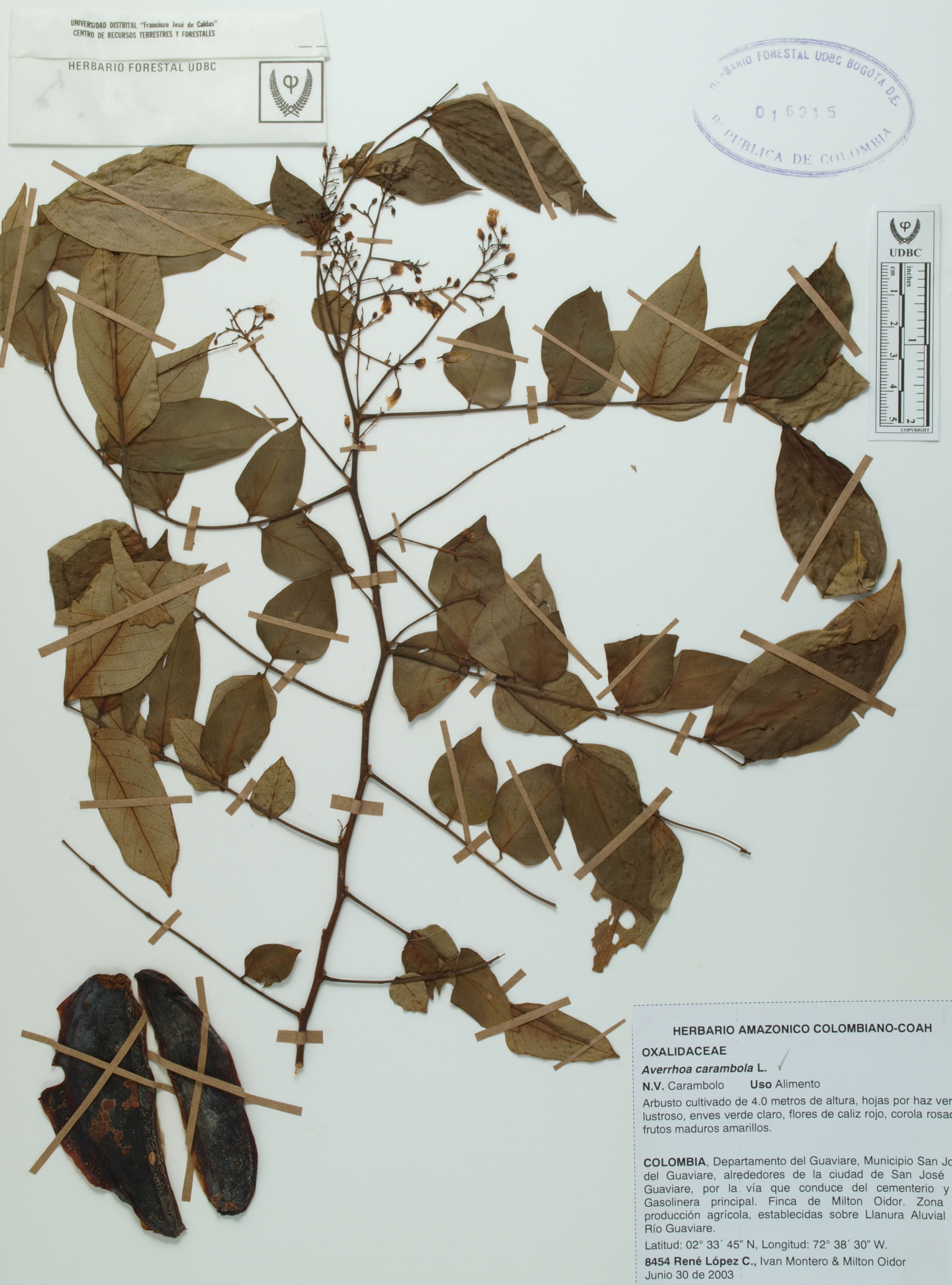 | dc.description | Fotografía del ejemplar López, R. 8454, determinado como Averrhoa carambola | |