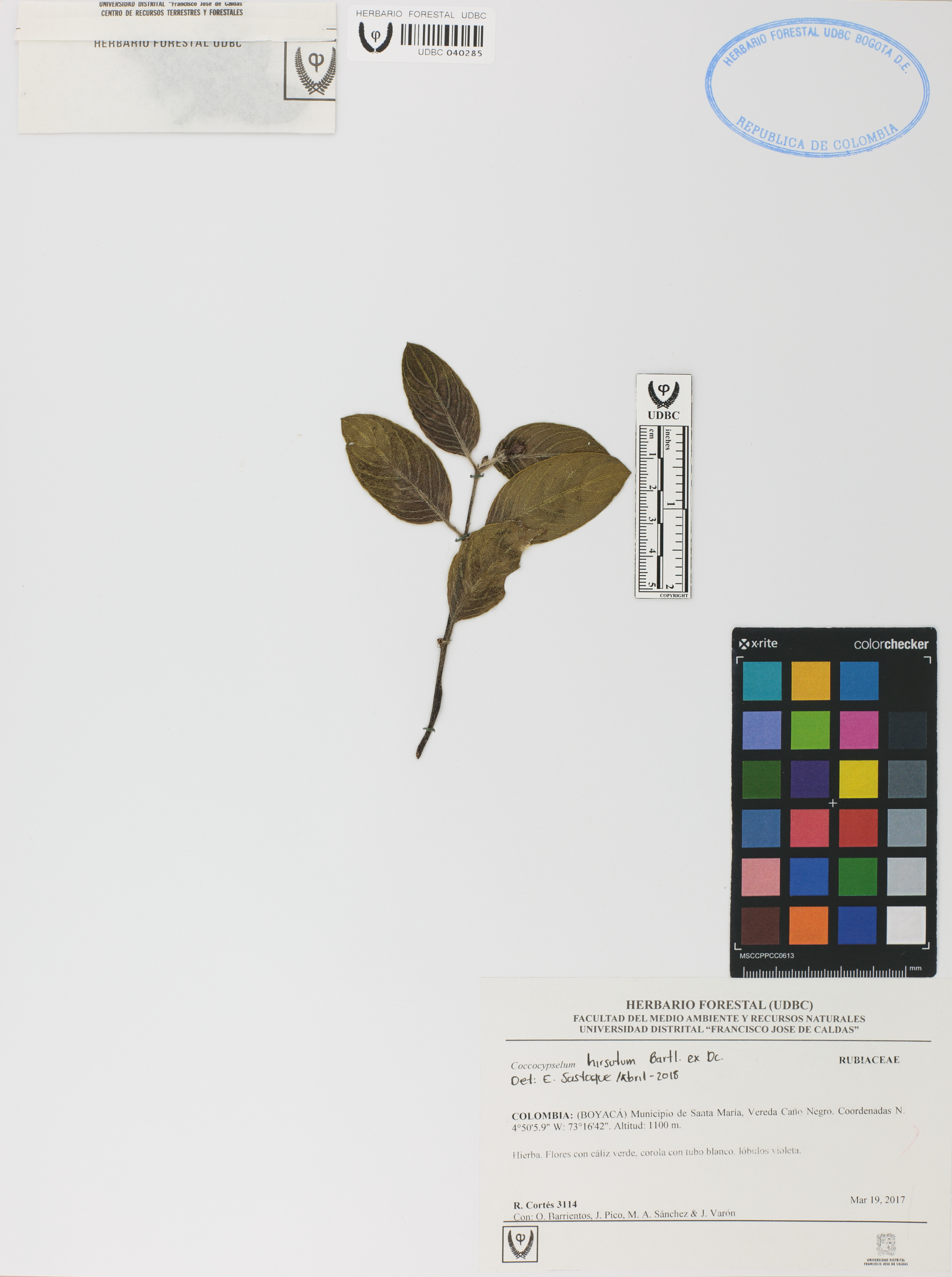 Fotografía del ejemplar Cortés, R. 3114, determinado como Coccocypselum hirsutum en el año 2018