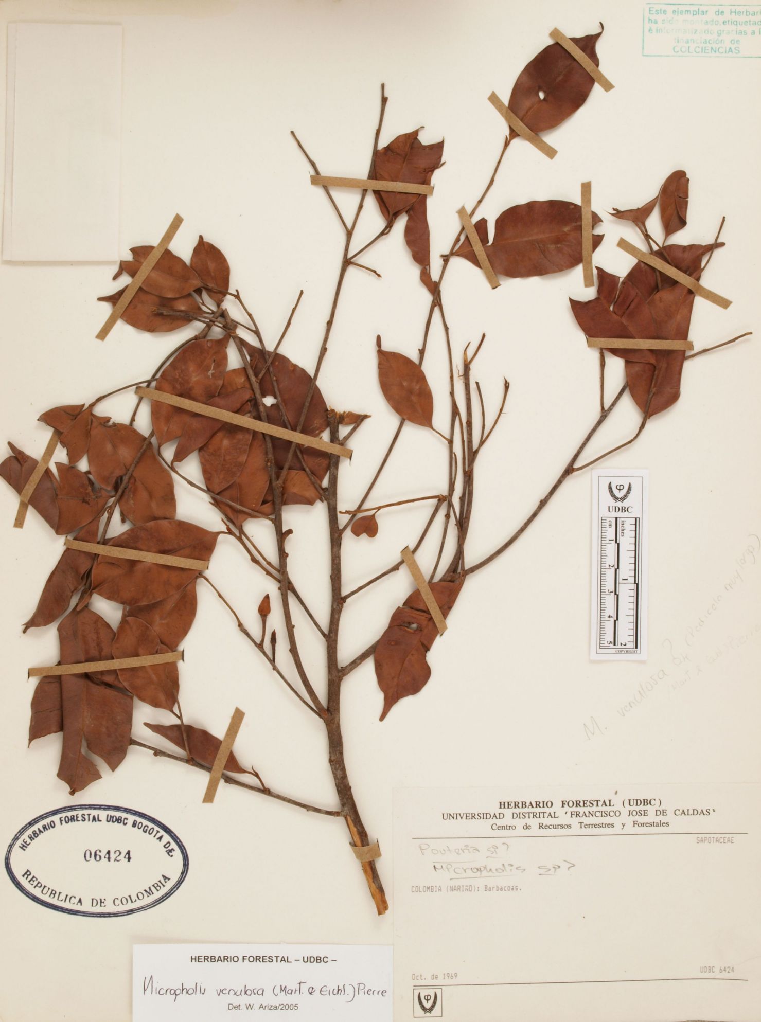 Fotografía del ejemplar SD, determinado como Micropholis venulosa en el año 2005