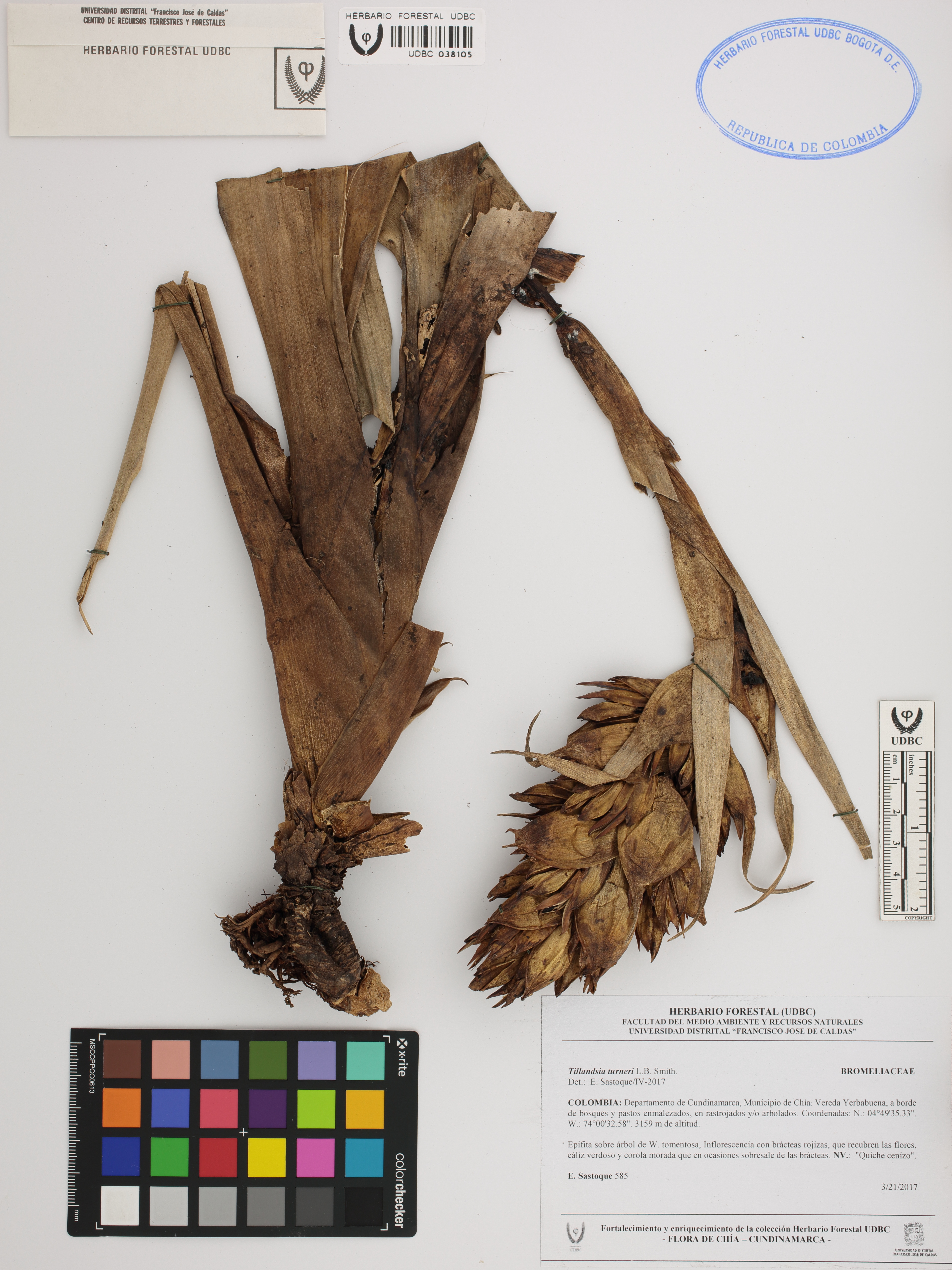 | dc.description | Fotografía del ejemplar Sastoque, E. 585, determinado como Tillandsia turneri en el año 2017 | |