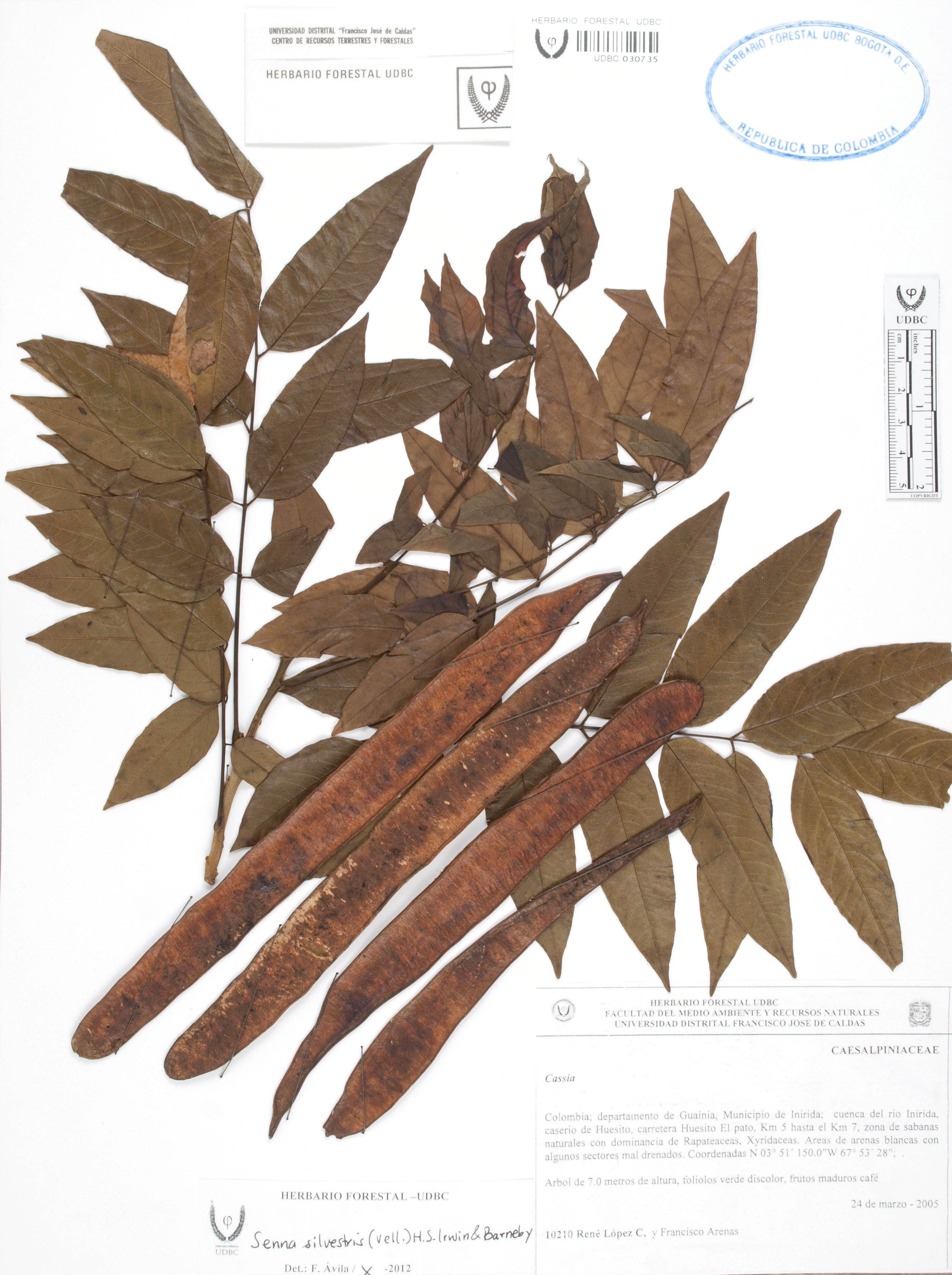 Fotografía del ejemplar López, R. 10210, determinado como Senna silvestris en el año 2012