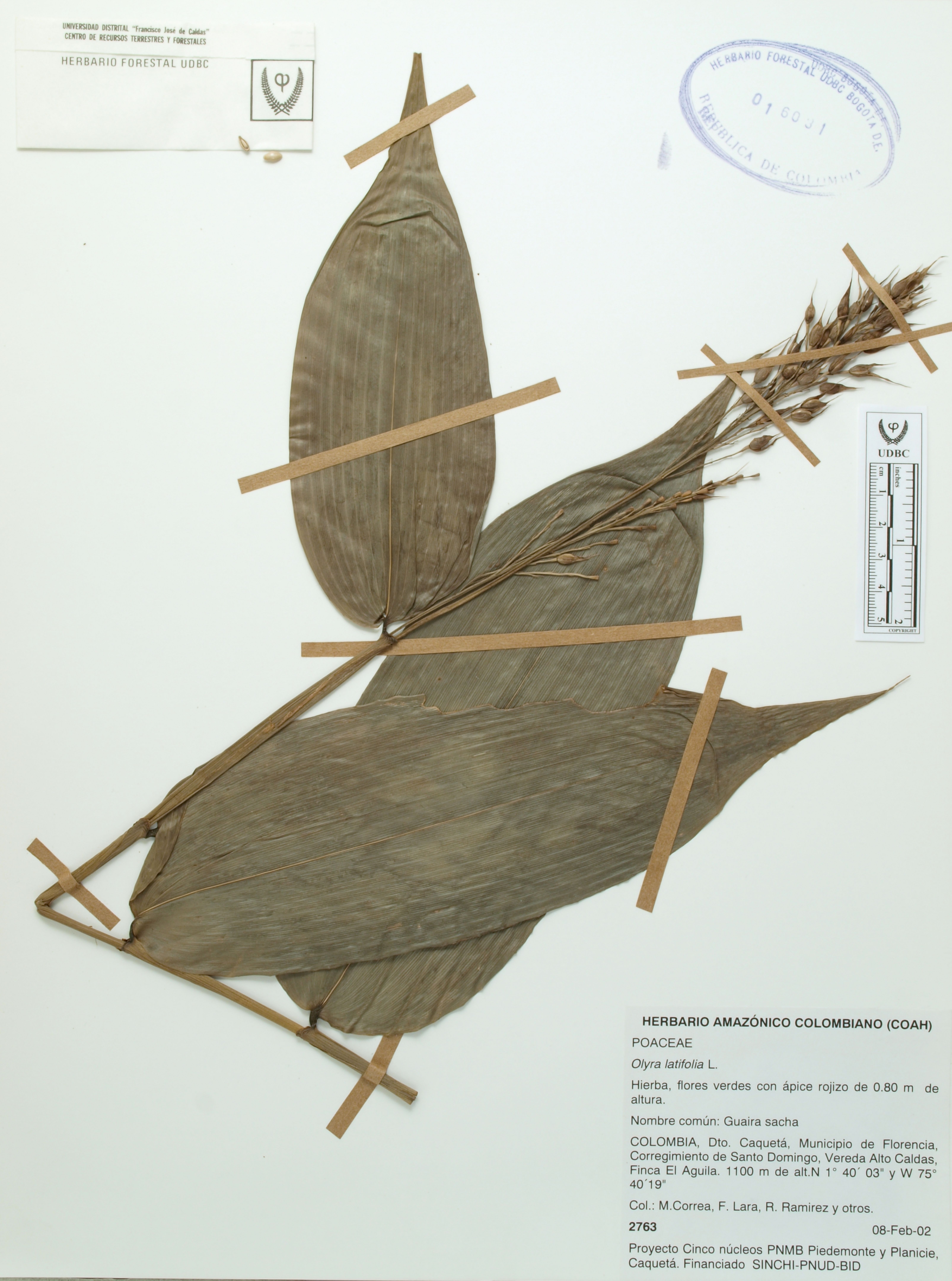 Fotografía del ejemplar Correa, M. 2763, determinado como Olyra latifolia