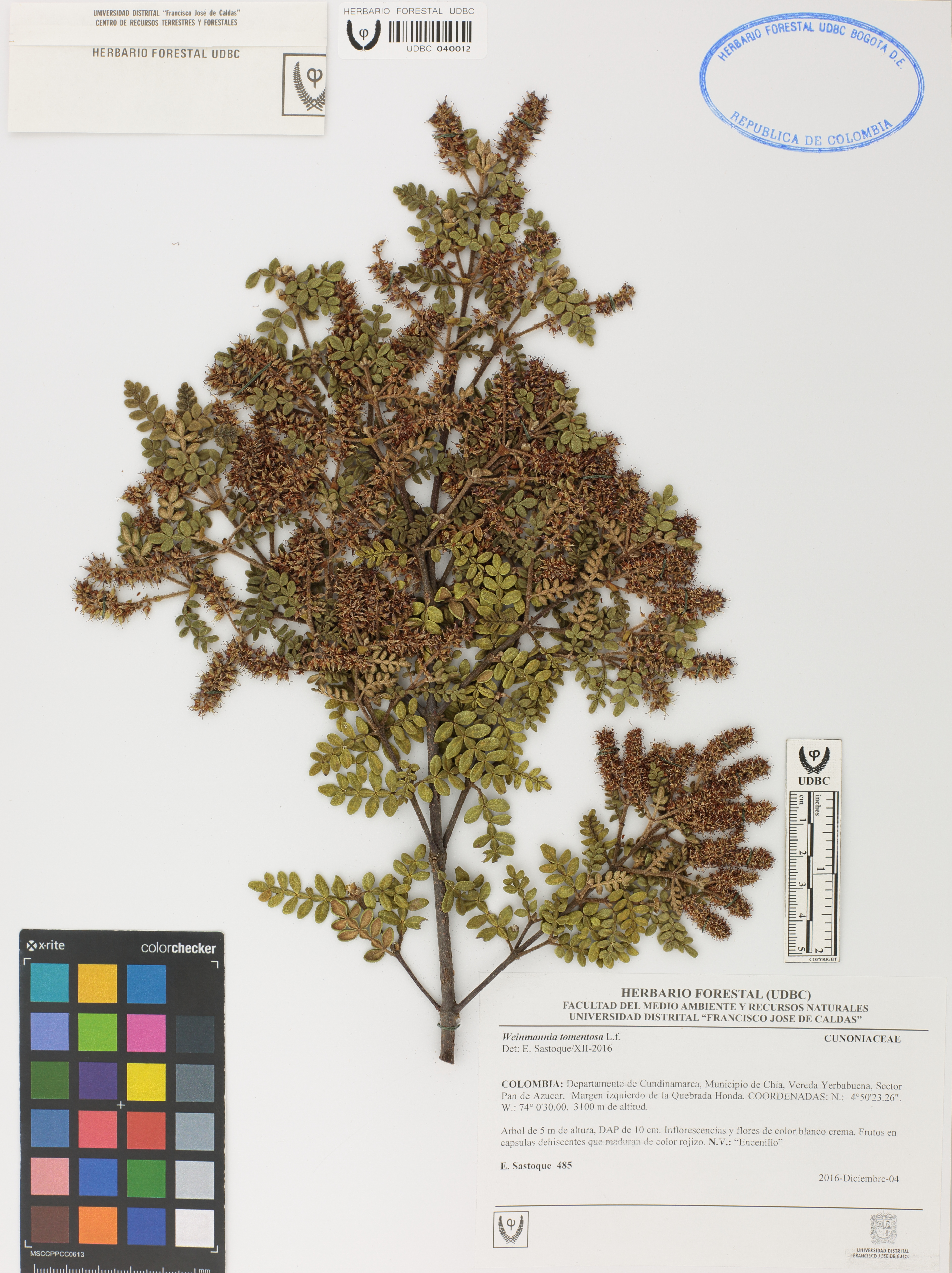| dc.description | Fotografía del ejemplar Sastoque, E. 485, determinado como Weinmannia tomentosa en el año 2016 | |