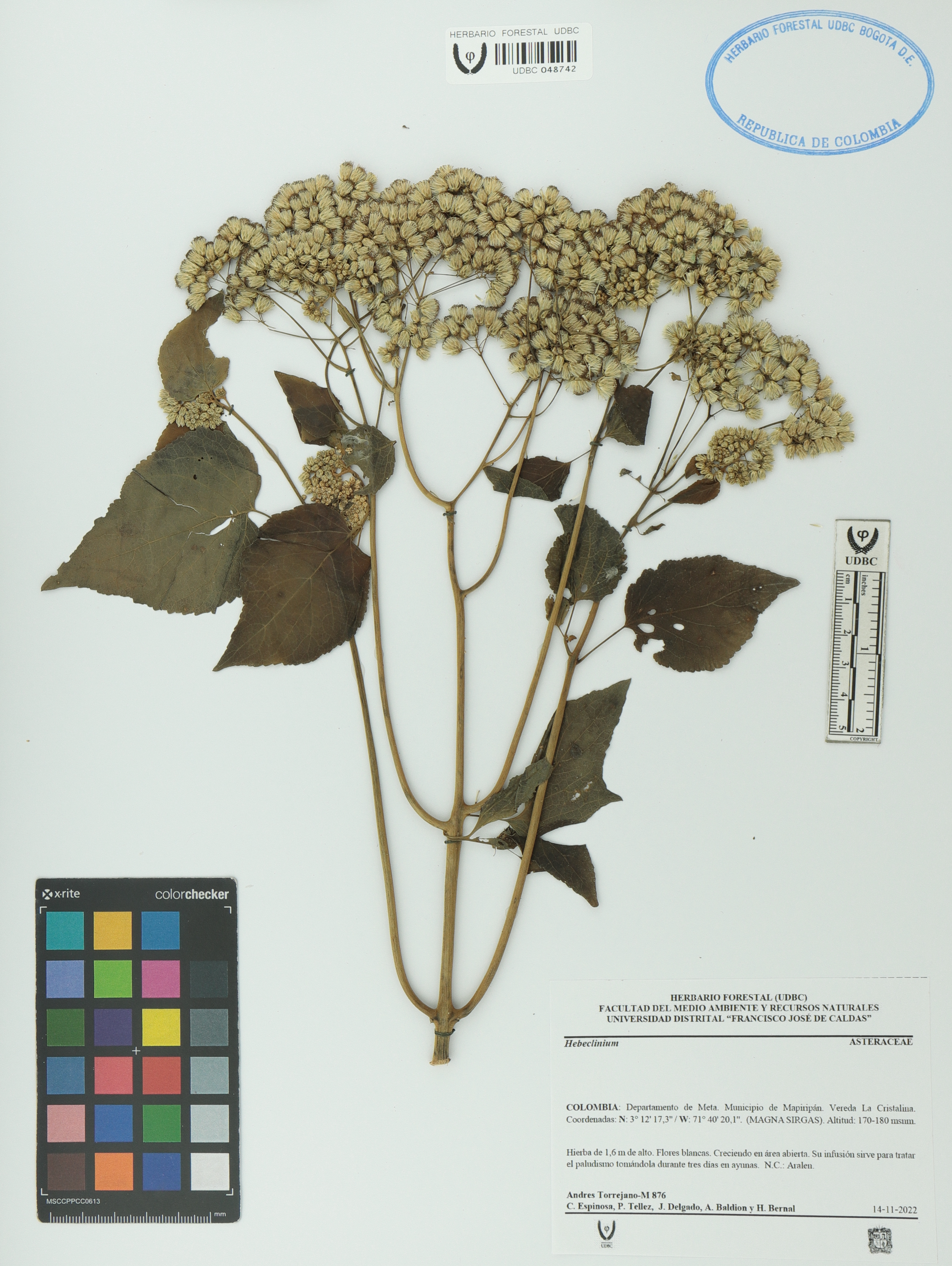 Fotografía del ejemplar Torrejano-M., Andrés 876, determinado como Hebeclinium sp. en el año 2022