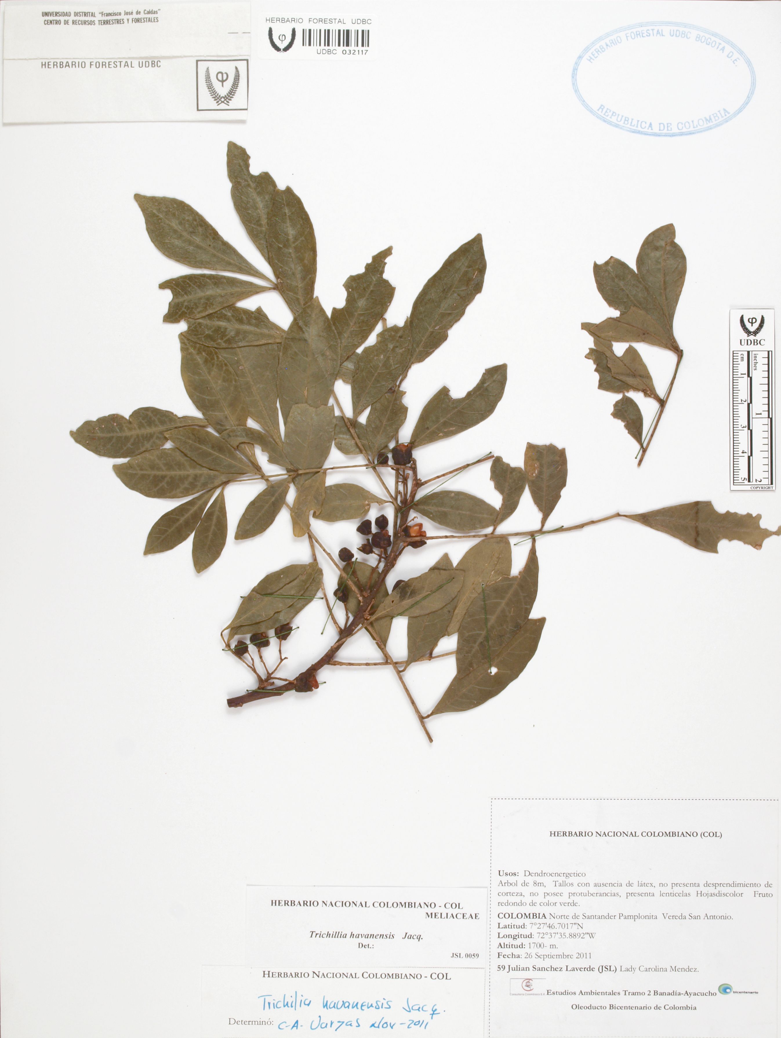 Fotografía del ejemplar Sánchez, J. 59, determinado como Trichilia havanensis