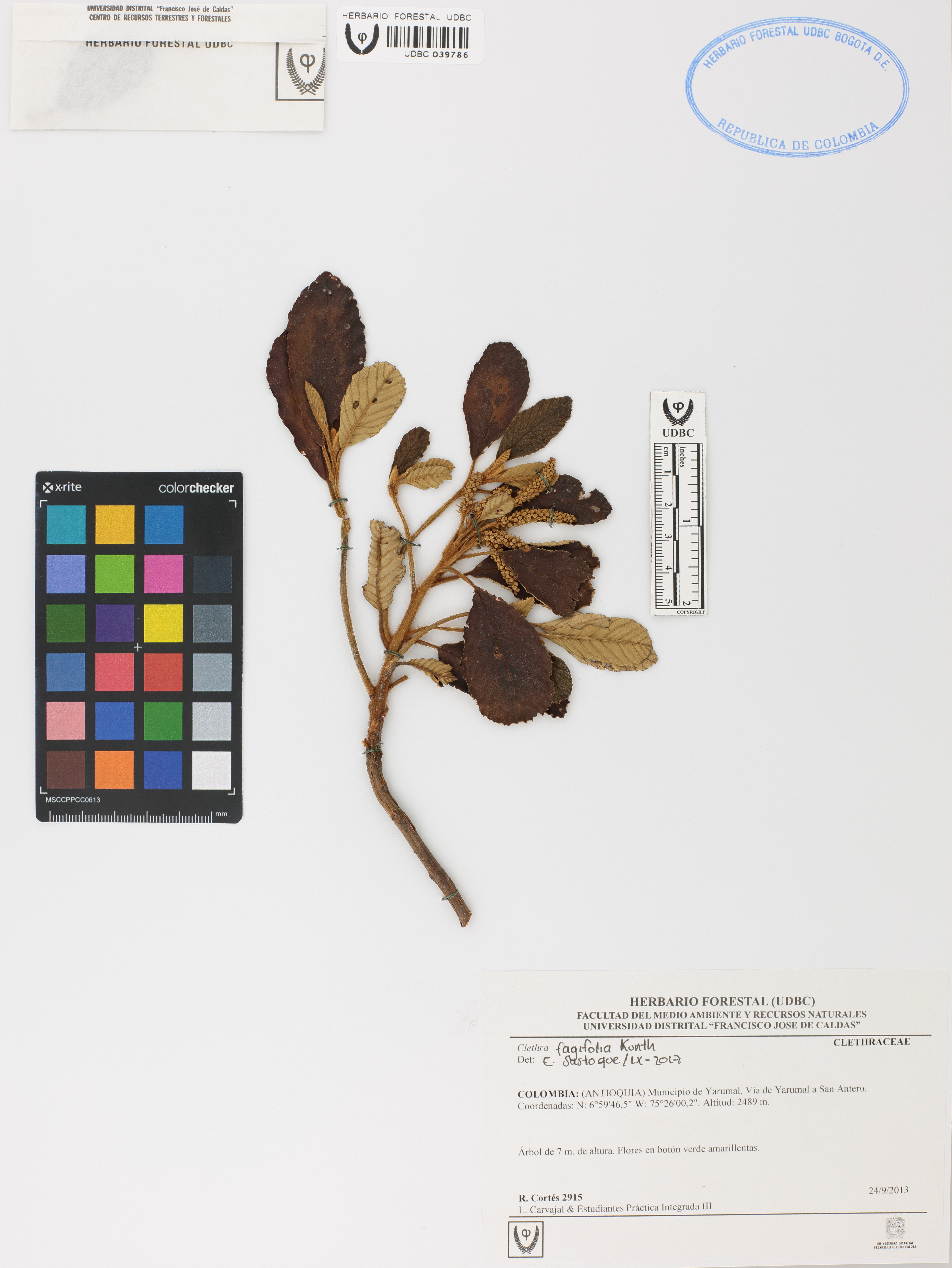 Fotografía del ejemplar Cortés, R. 2915, determinado como Clethra fagifolia en el año 2017
