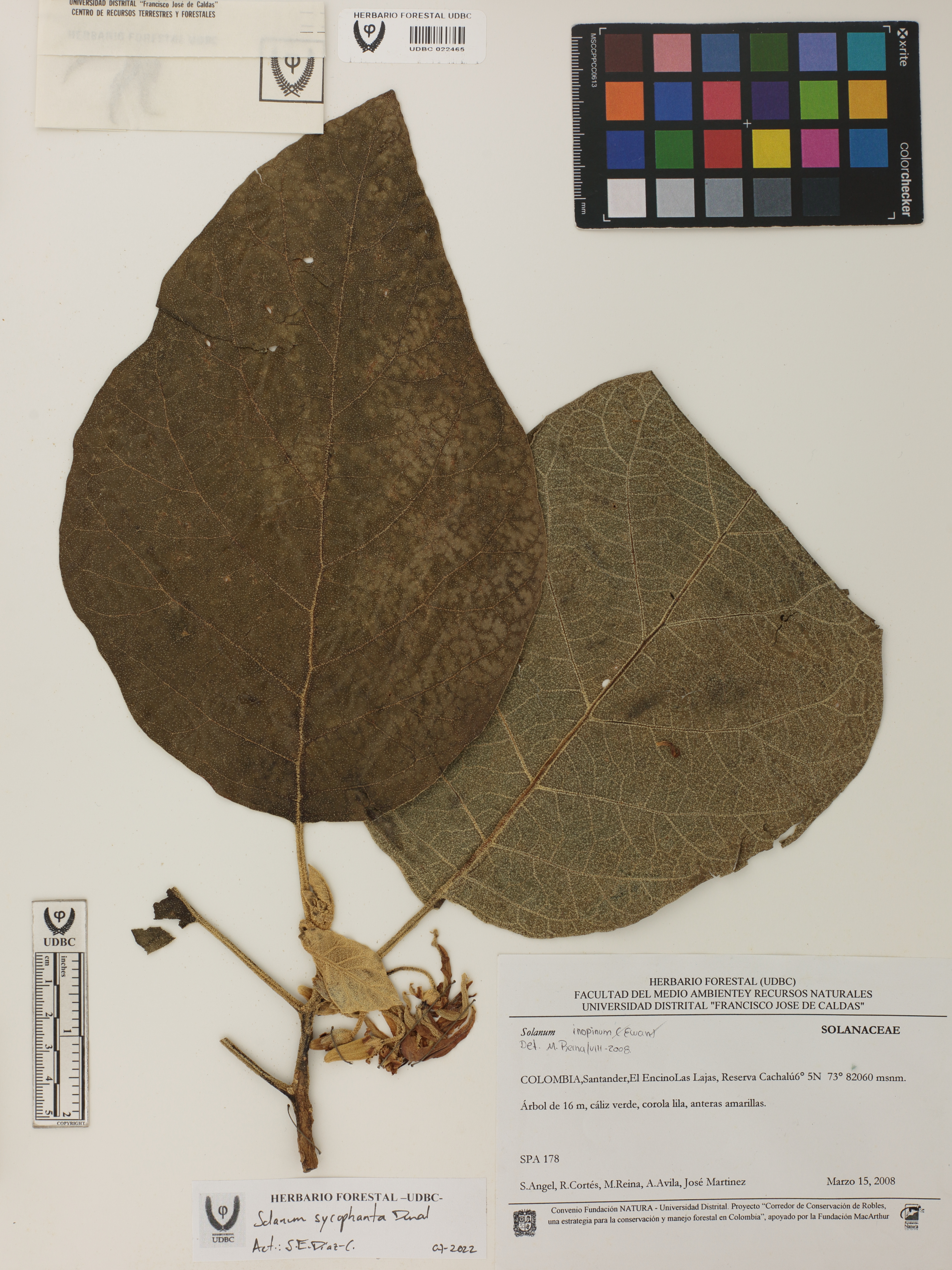 Fotografía del ejemplar Ángel, S. 178, determinado como Solanum sycophanta en el año 2008
