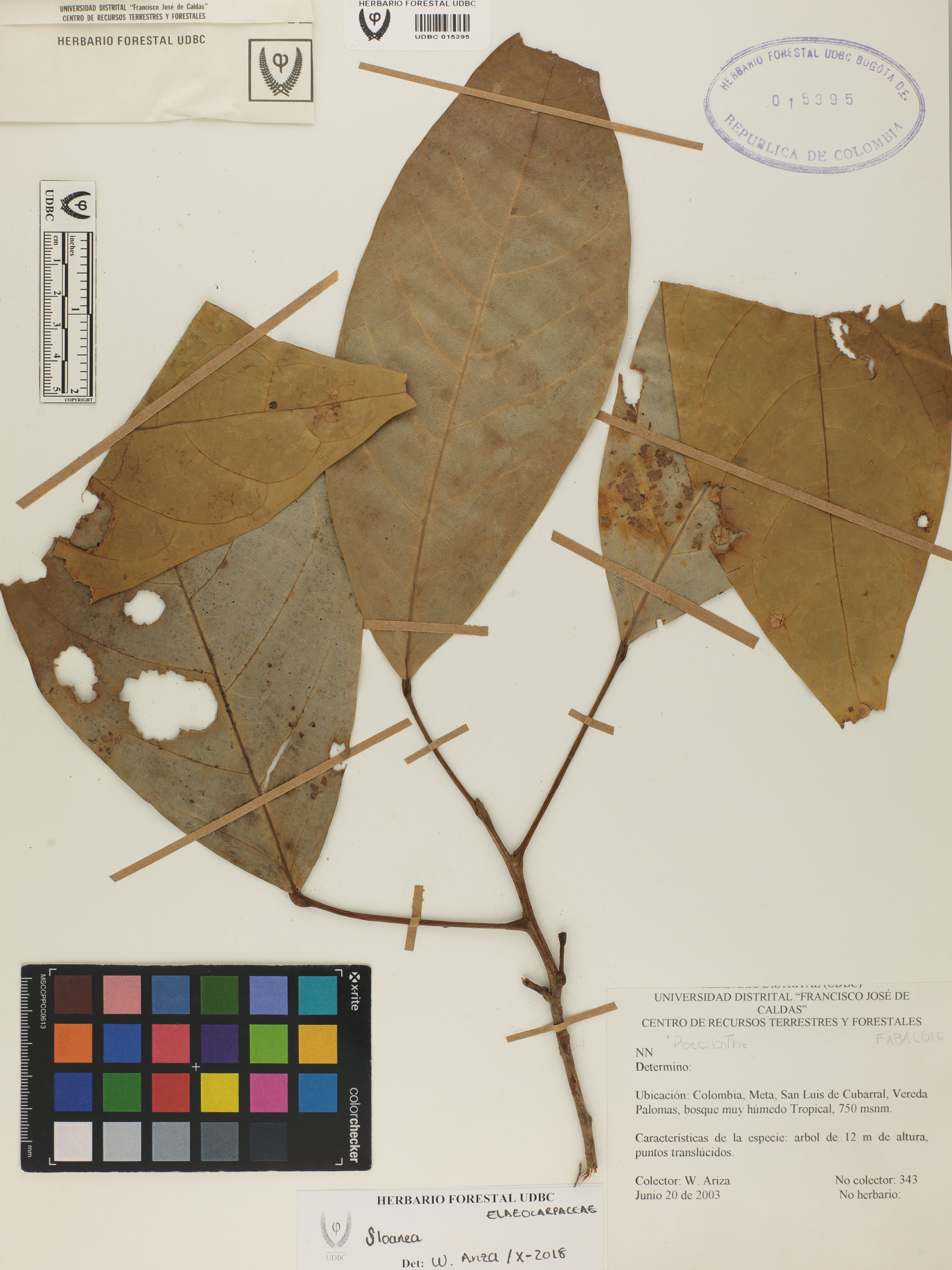 Fotografía del ejemplar Ariza, W. 343, determinado como Sloanea sp. en el año 2018