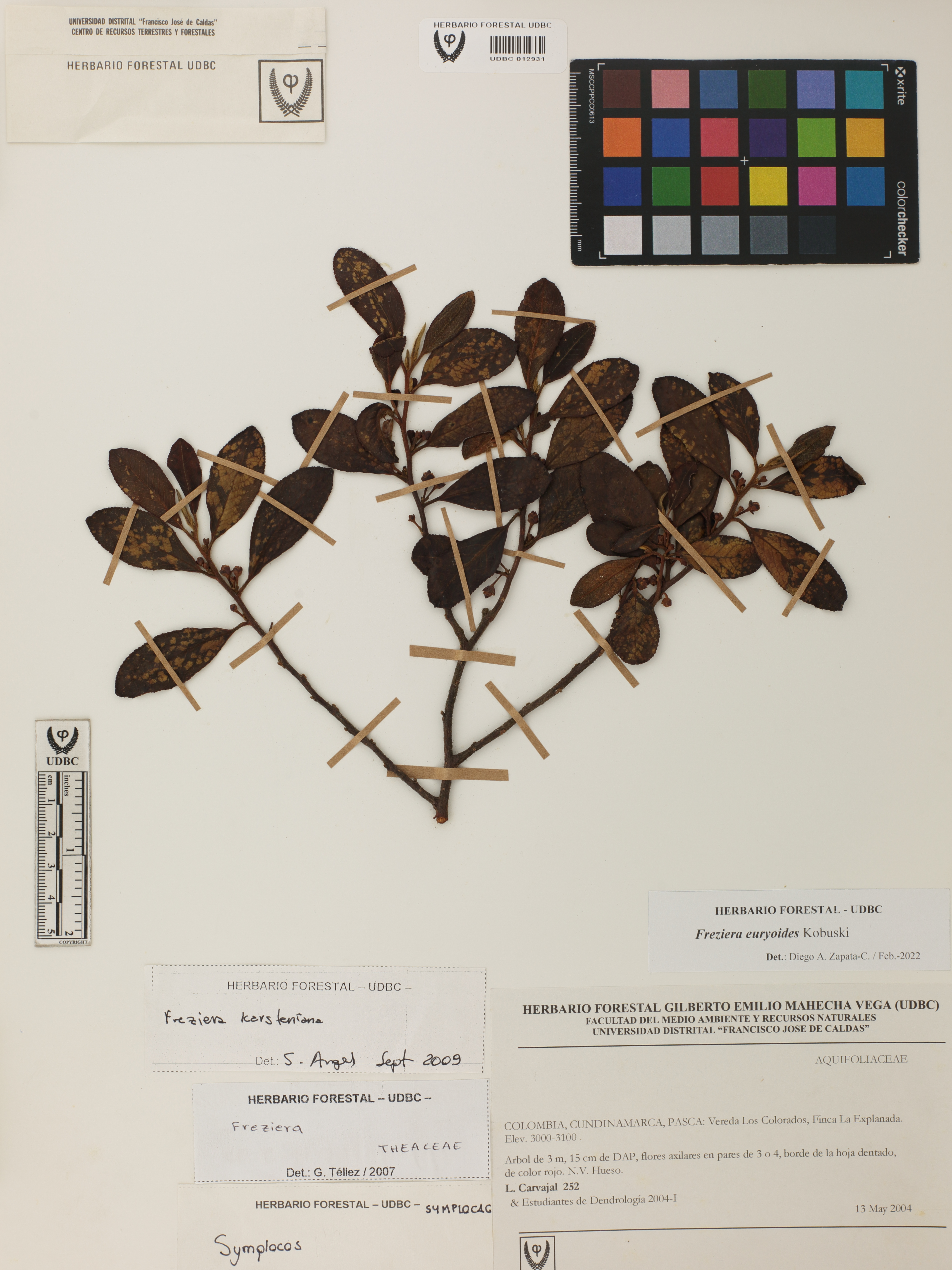 | dc.description | Fotografía del ejemplar Carvajal, L. 252, determinado como Freziera euryoides en el año 2022 | |