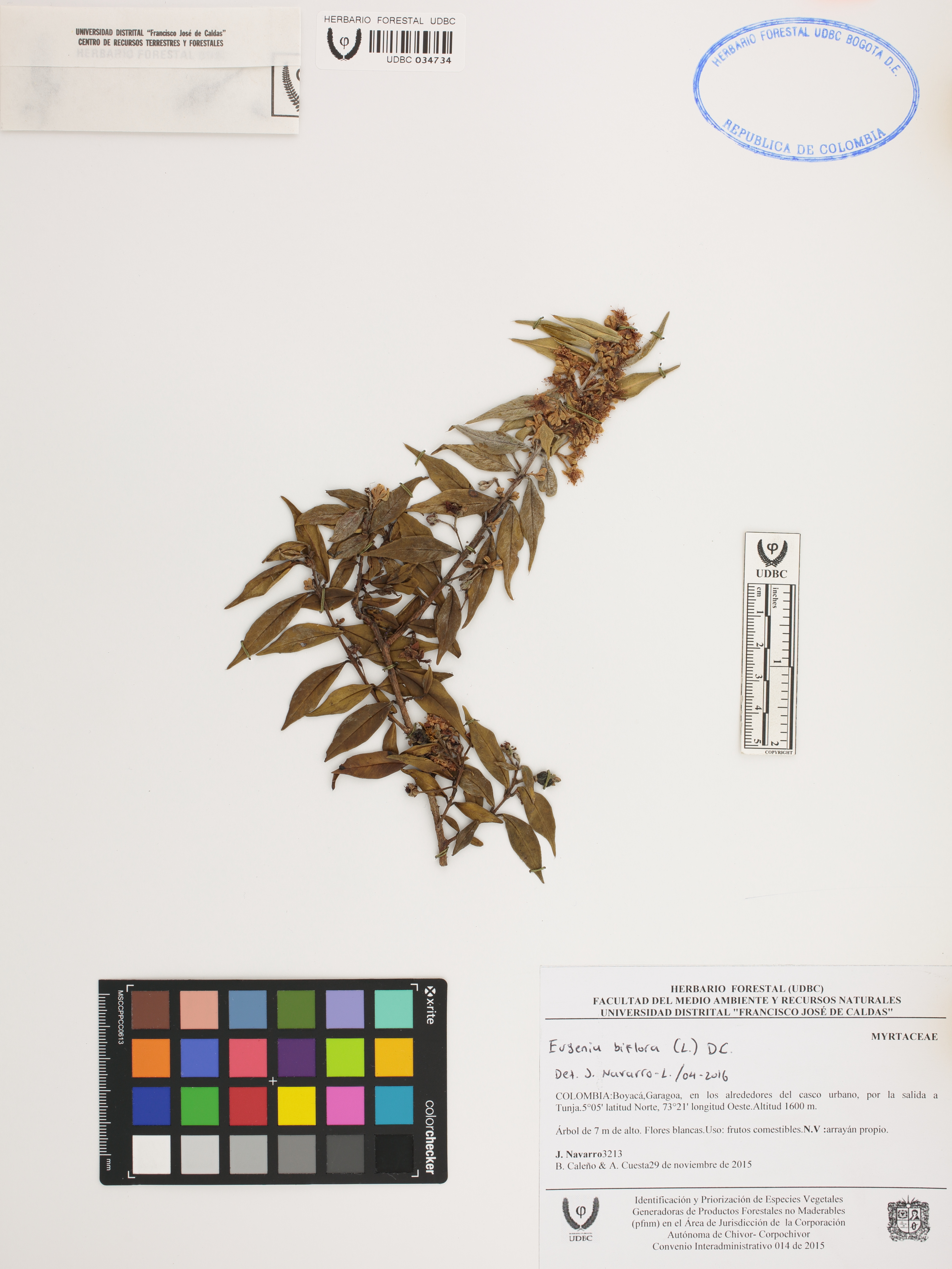 Fotografía del ejemplar Navarro, J. 3213, determinado como Eugenia biflora en el año 2016