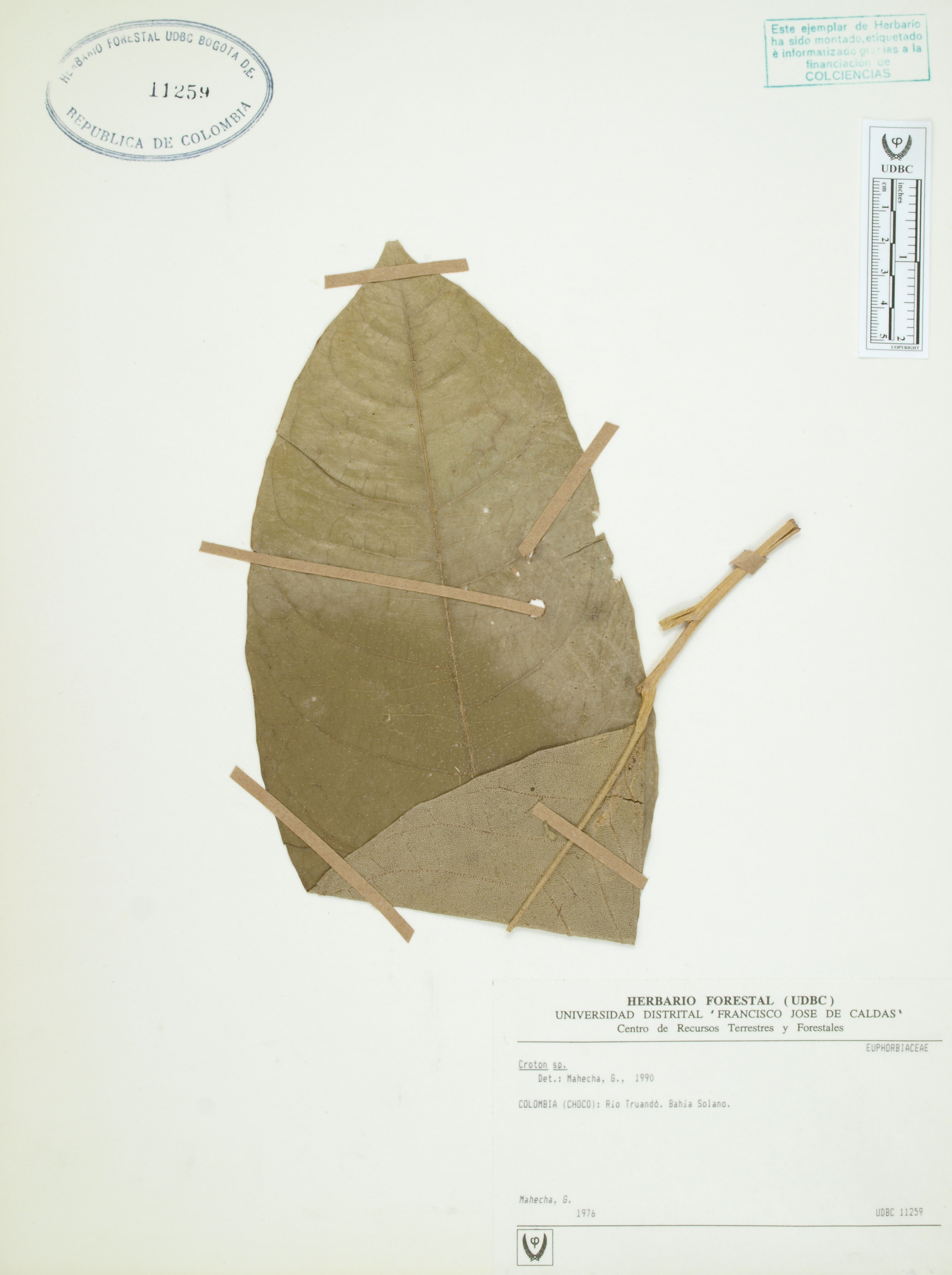 Fotografía del ejemplar Mahecha, G., determinado como Croton jorgei en el año 2009