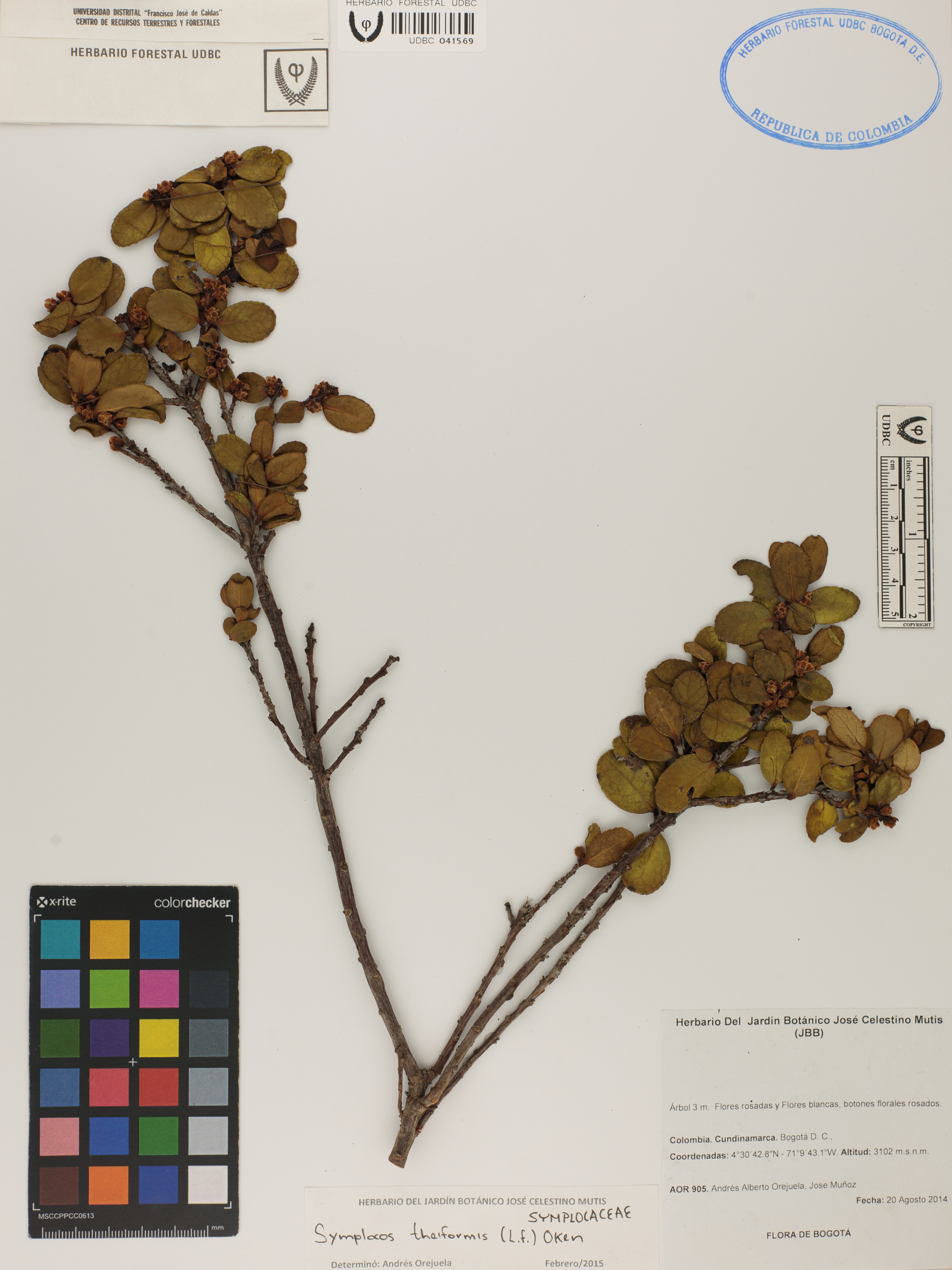 Fotografía del ejemplar Orejuela, A. 905, determinado como Symplocos theiformis en el año 2015