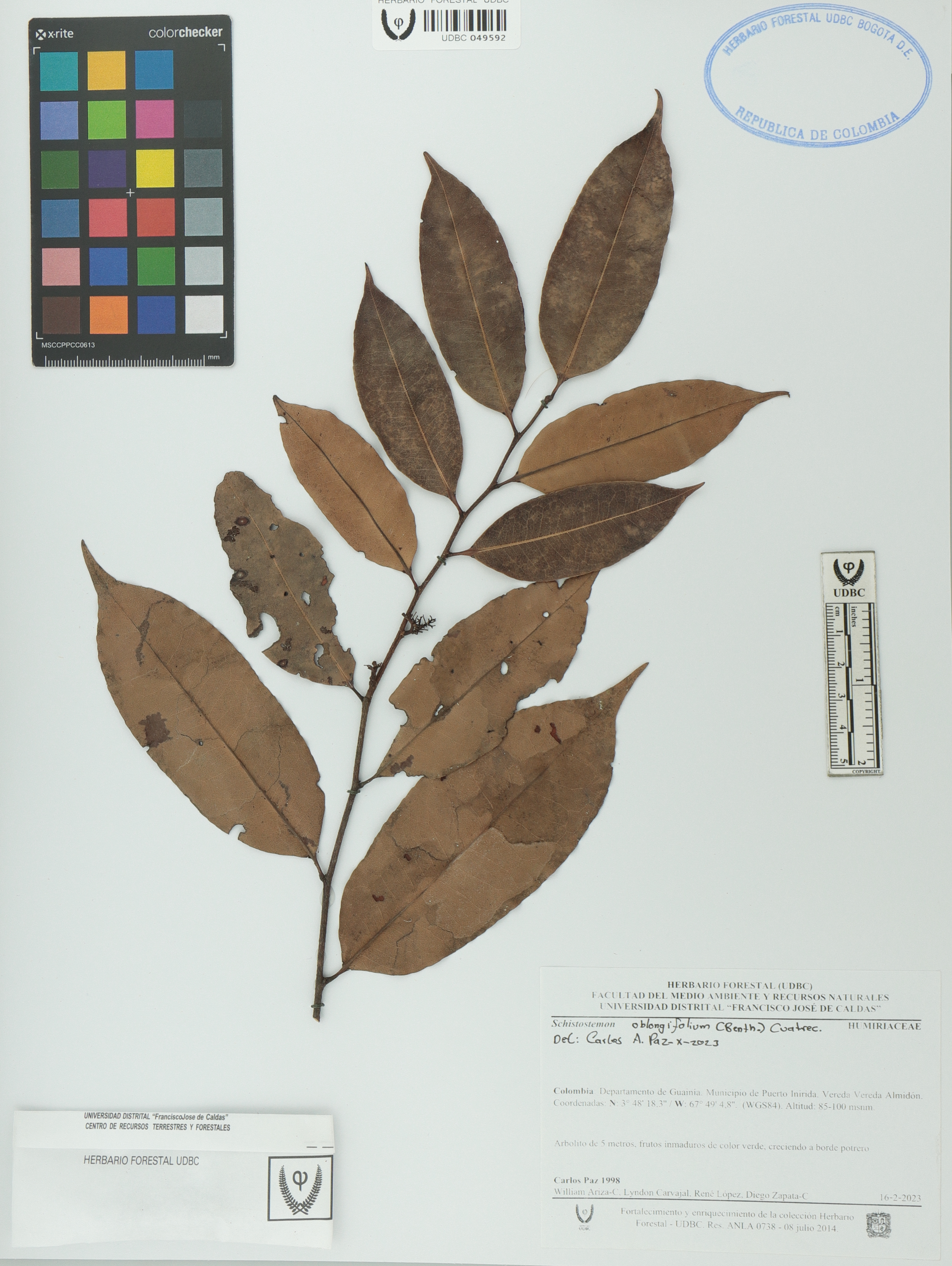 Fotografía del ejemplar Paz, C. 1998, determinado como Schistostemon oblongifolium en el año 2023