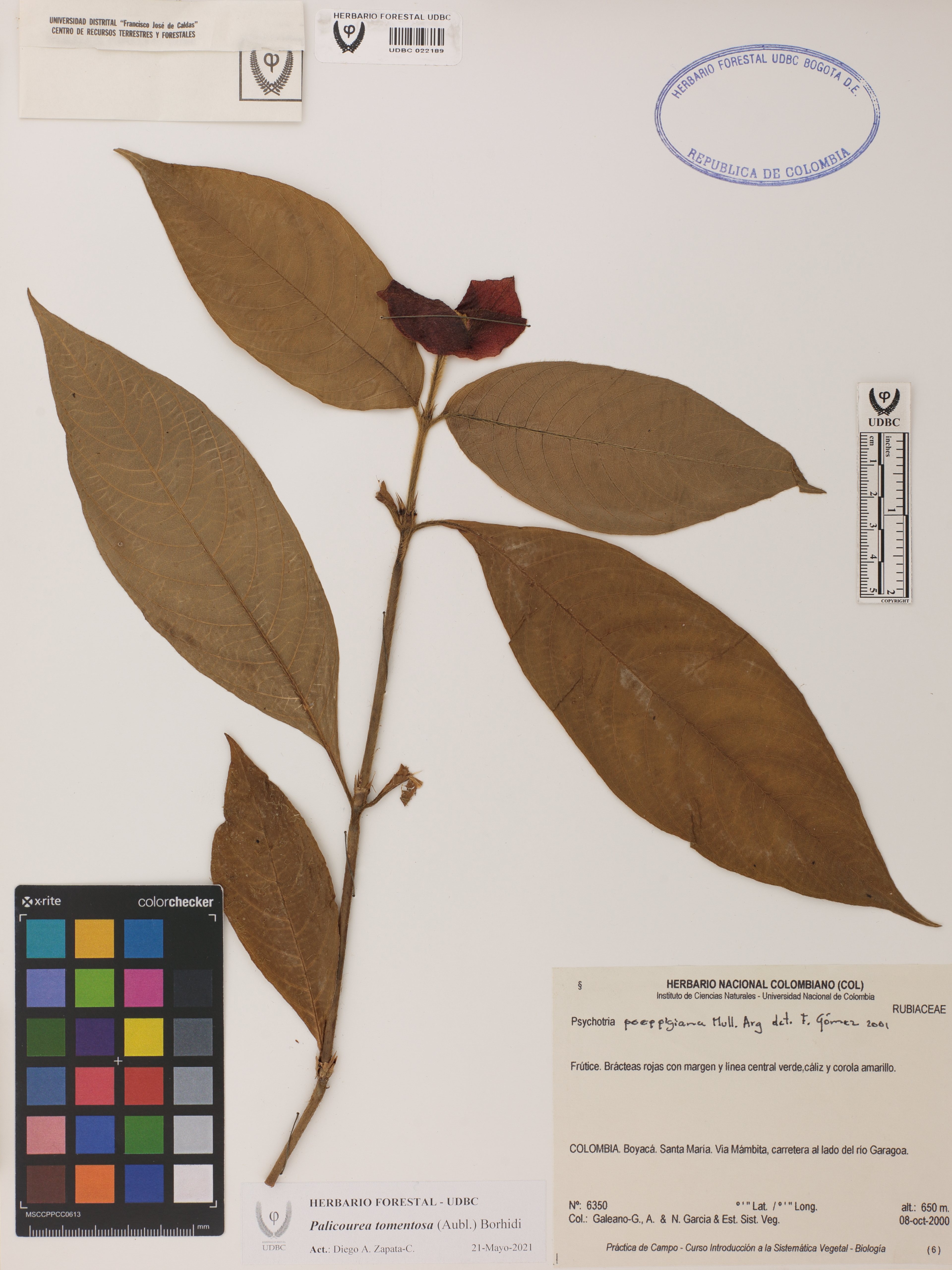 | dc.description | Fotografía del ejemplar Galeano, G. 6350, determinado como Palicourea tomentosa en el año 2000 | |