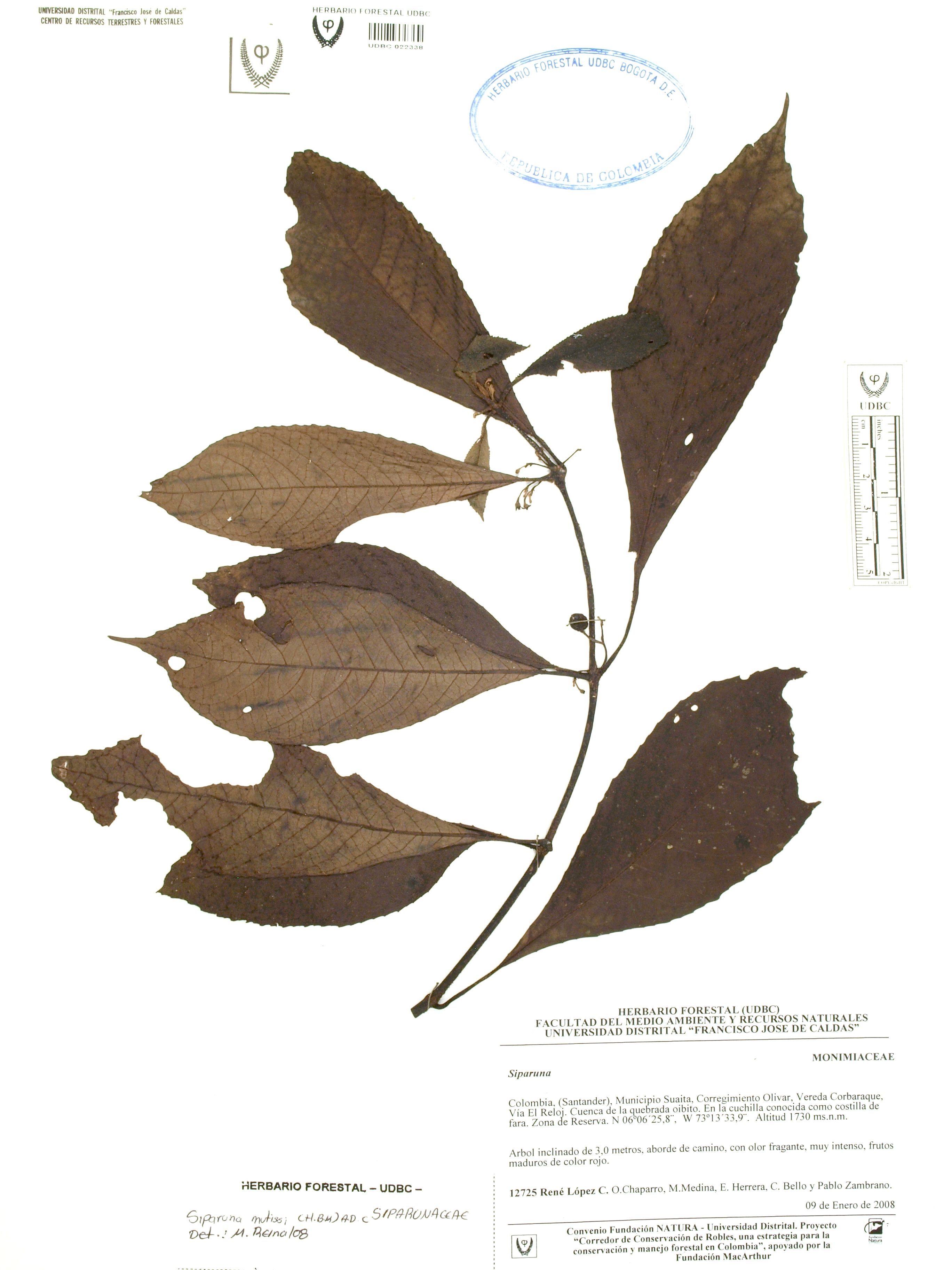 | dc.description | Fotografía del ejemplar López, R. 12725, determinado como Siparuna mutisii en el año 2008 | |