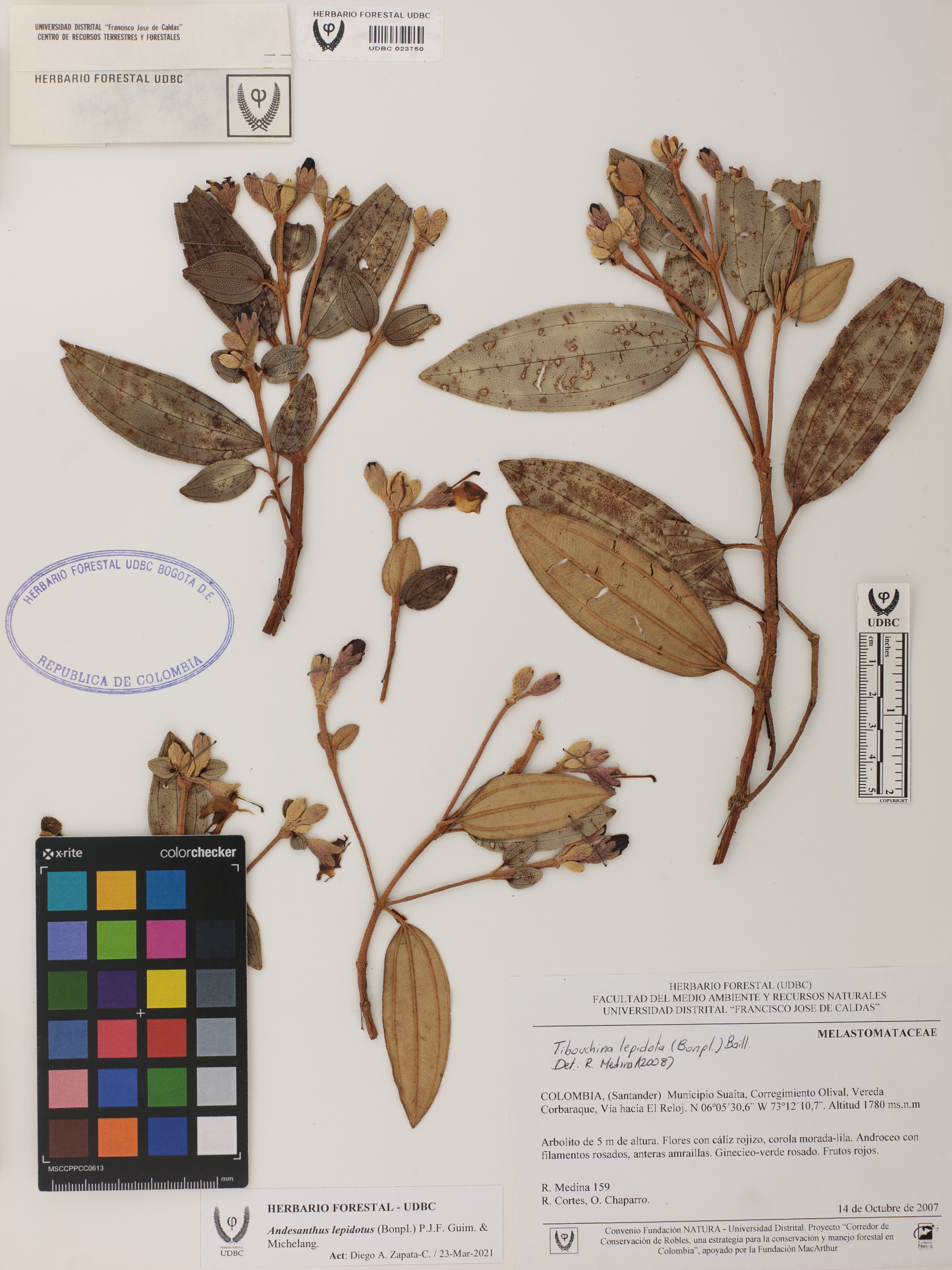 Fotografía del ejemplar Medina, R. 159, determinado como Andesanthus lepidotus en el año 2008