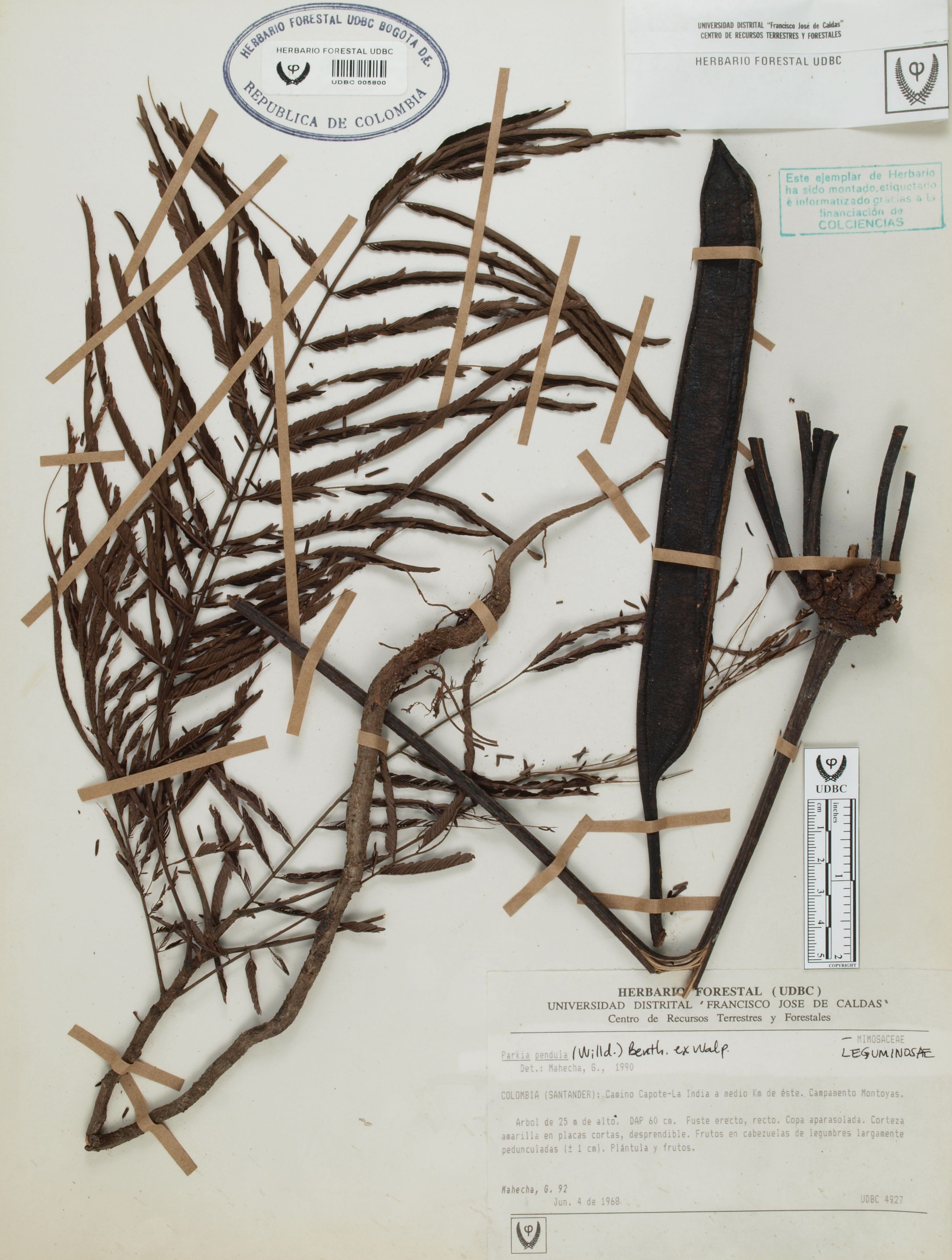 Fotografía del ejemplar Mahecha, G. 92, determinado como Parkia pendula en el año 1990