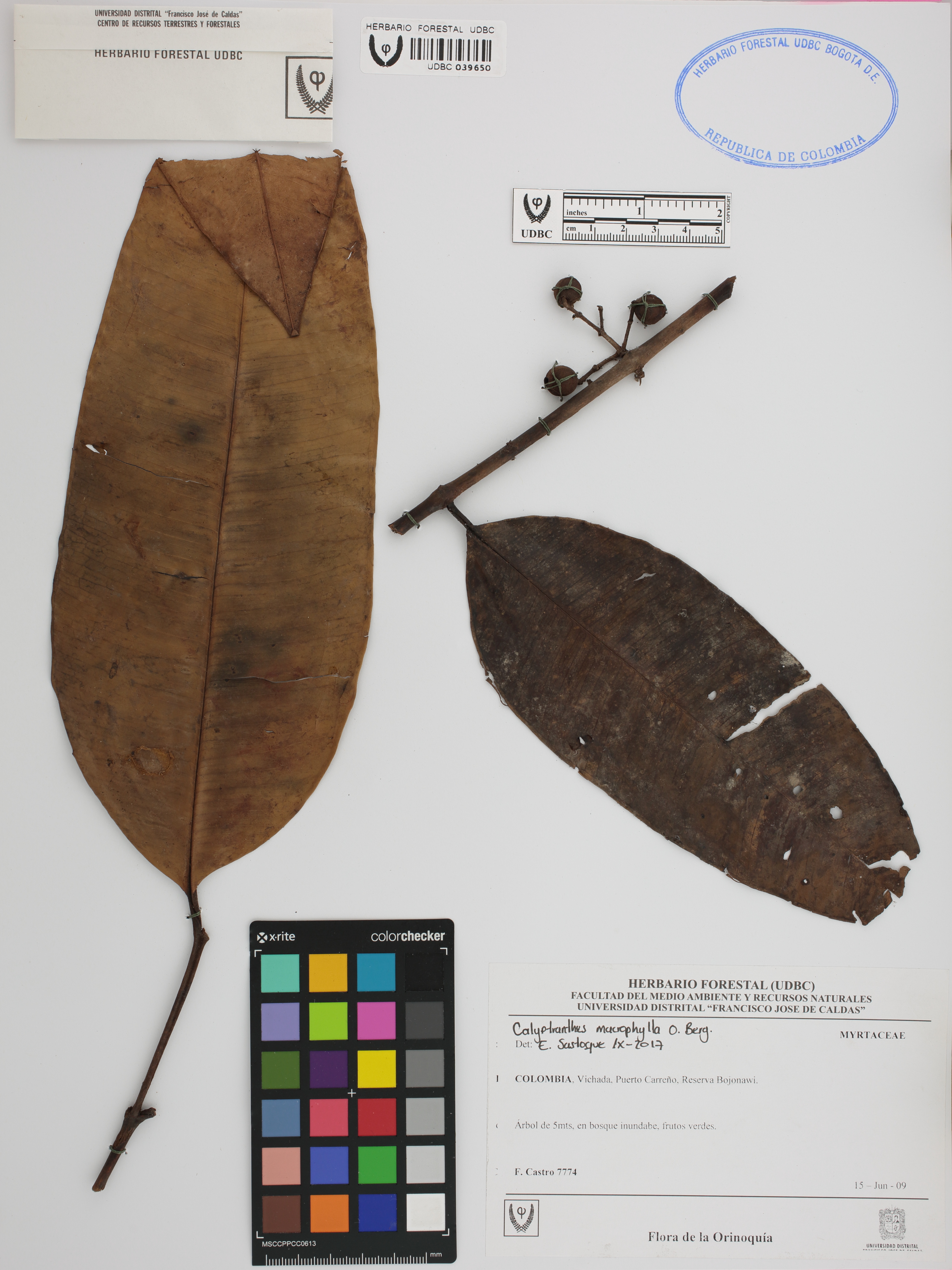 Fotografía del ejemplar Castro, F. 7774, determinado como Myrcia neomacrophylla en el año 2017