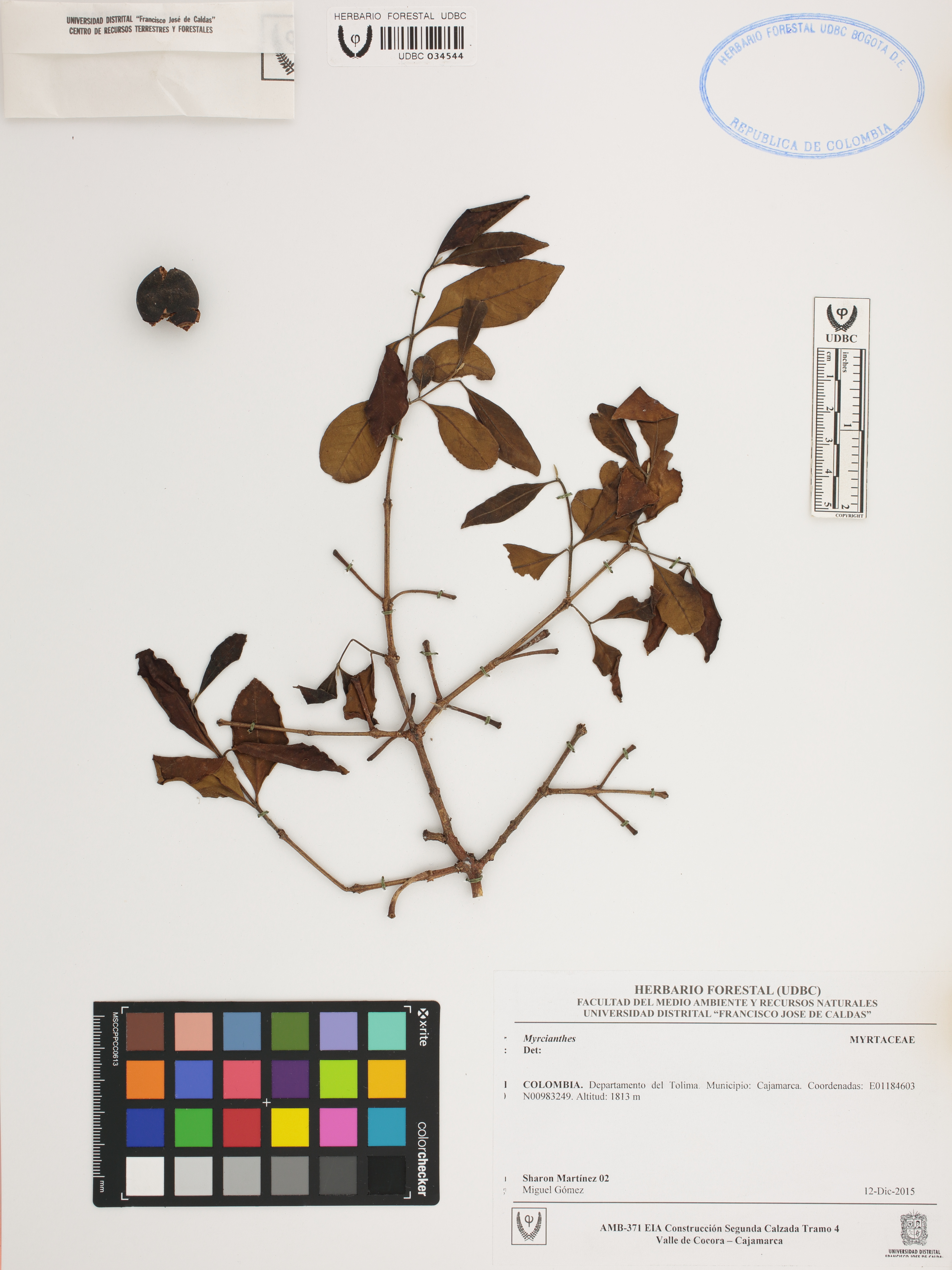 Fotografía del ejemplar Martínez, S. 2, determinado como Myrcianthes sp.