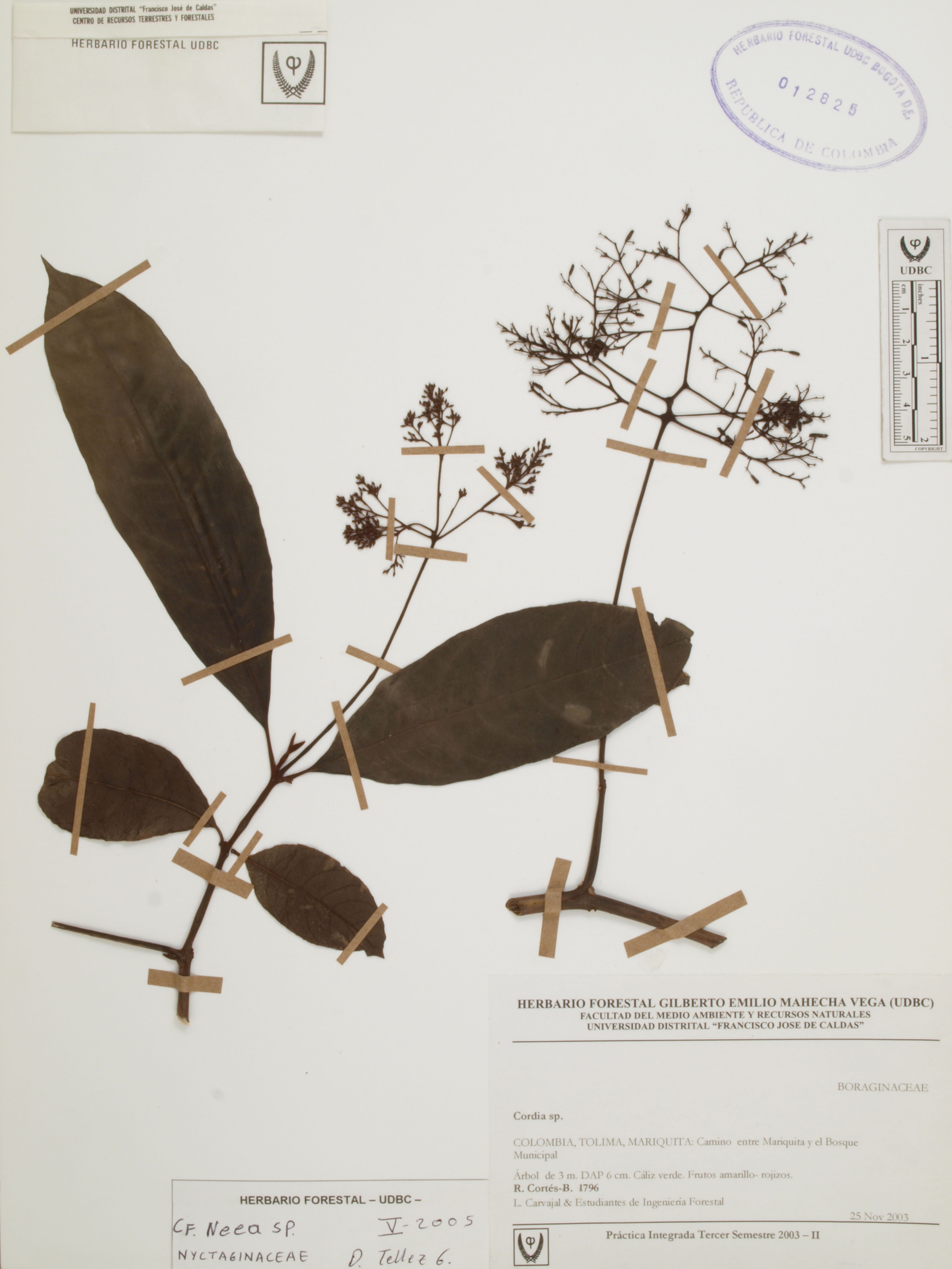 Fotografía del ejemplar Cortés-B., R. 1796, determinado como Neea sp. en el año 2005