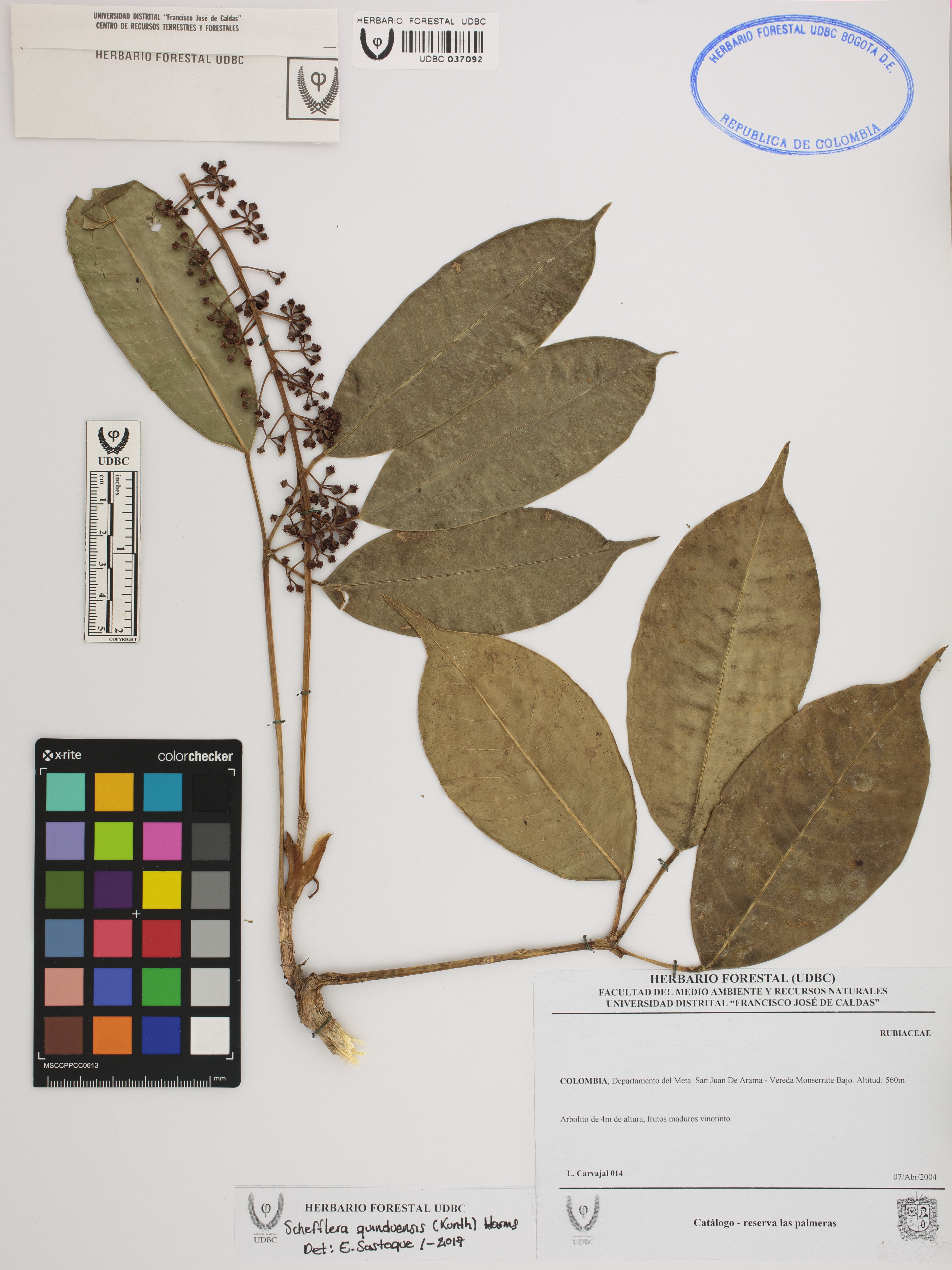 Fotografía del ejemplar Carvajal, L. 14, determinado como Sciodaphyllum sp. en el año 2020
