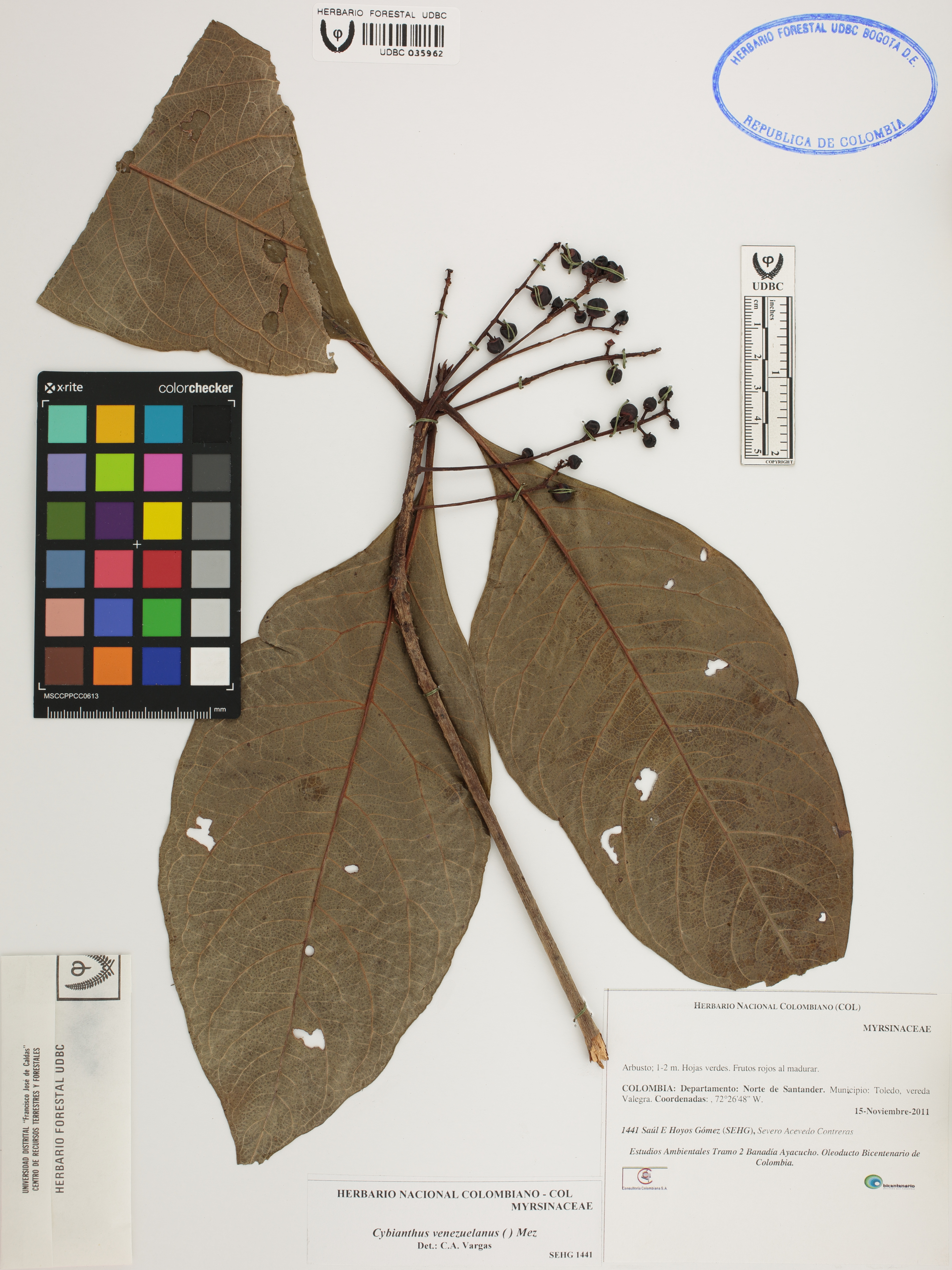 Fotografía del ejemplar Hoyos, S. 1441, determinado como Cybianthus venezuelanus