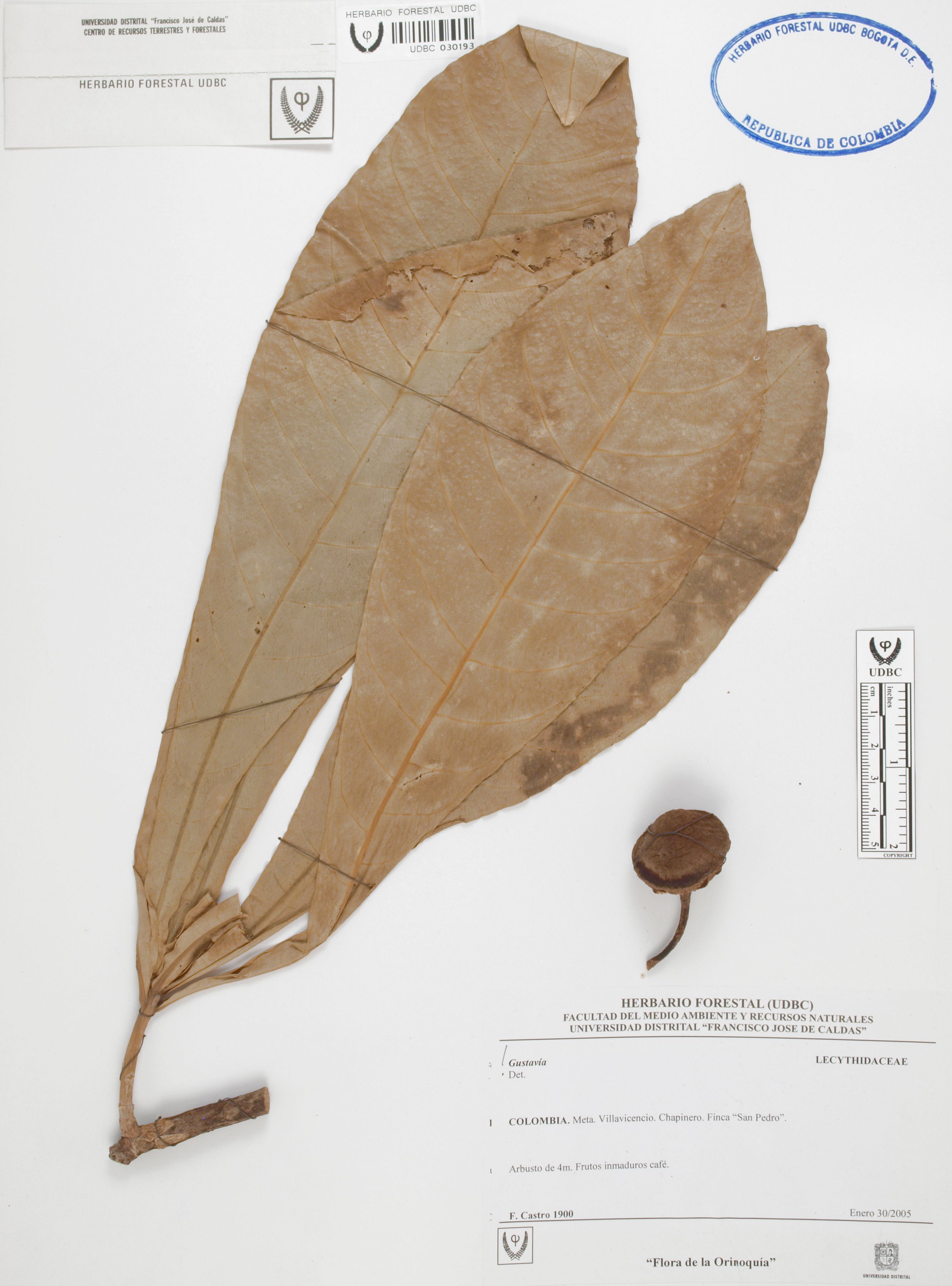 Fotografía del ejemplar Castro, F. 1900, determinado como Gustavia sp.