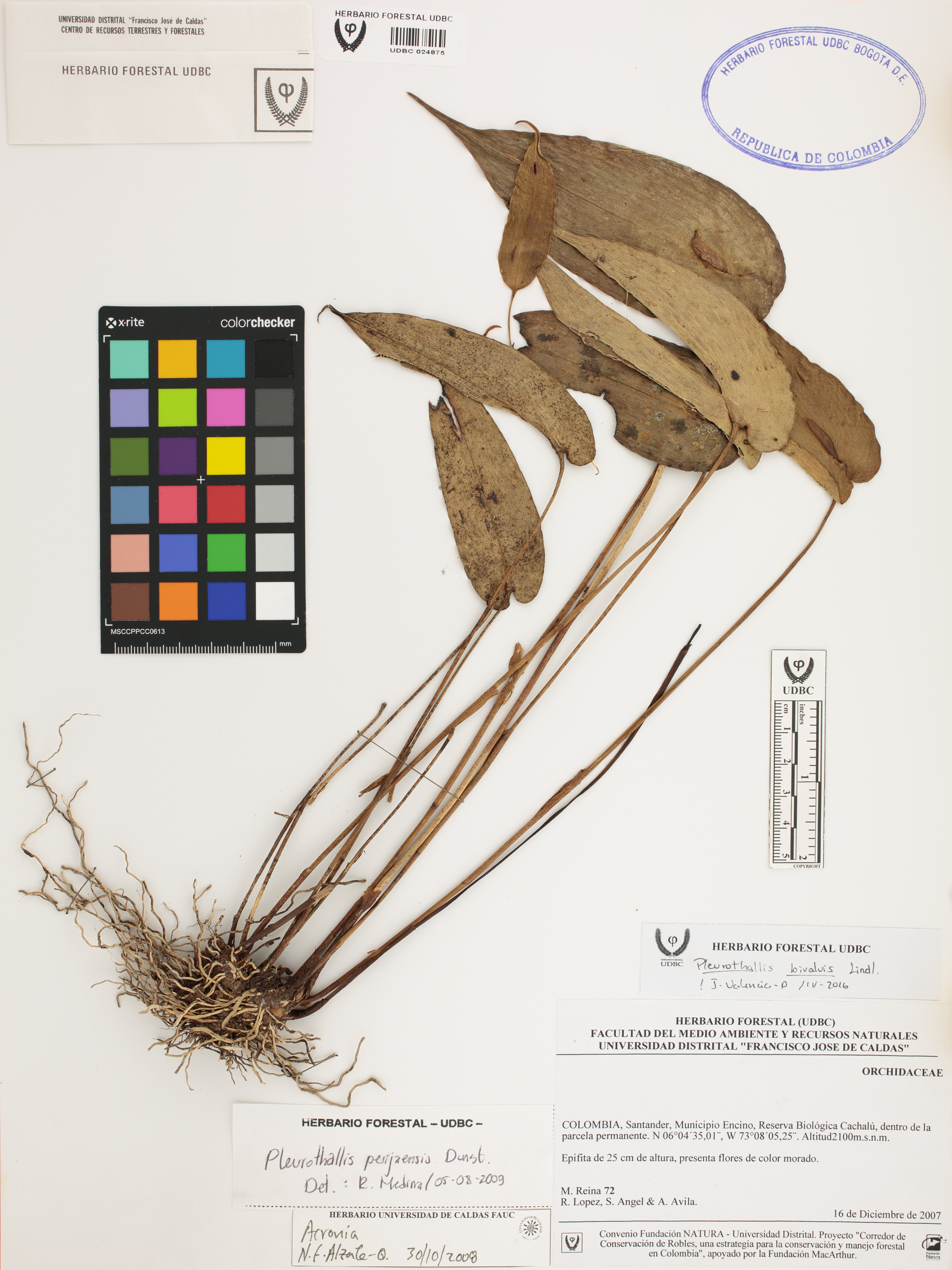 Fotografía del ejemplar Reina, M. 72, determinado como Pleurothallis bivalvis en el año 2016