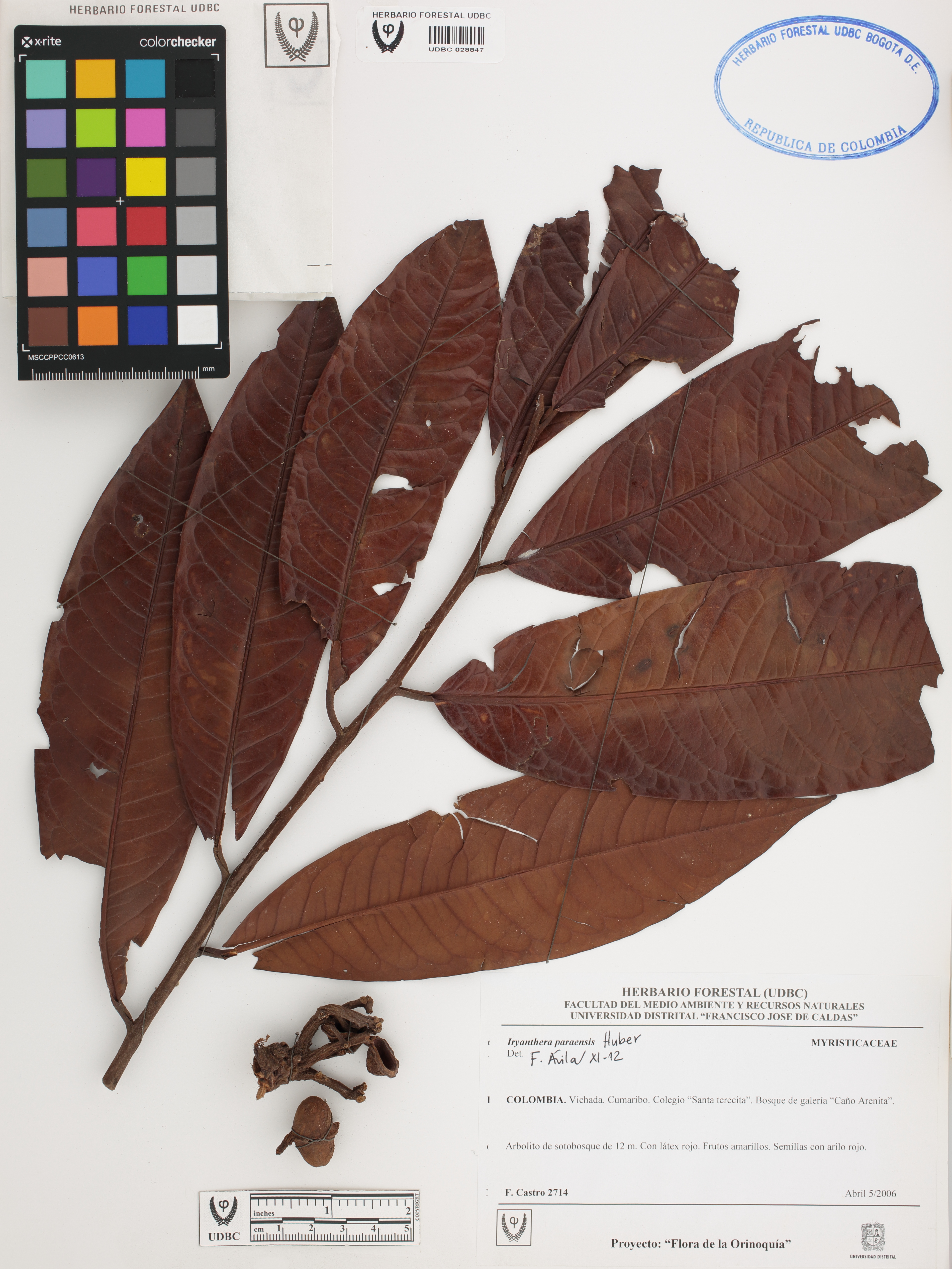 | dc.description | Fotografía del ejemplar Castro, F. 2714, determinado como Iryanthera paraensis en el año 2012 | |