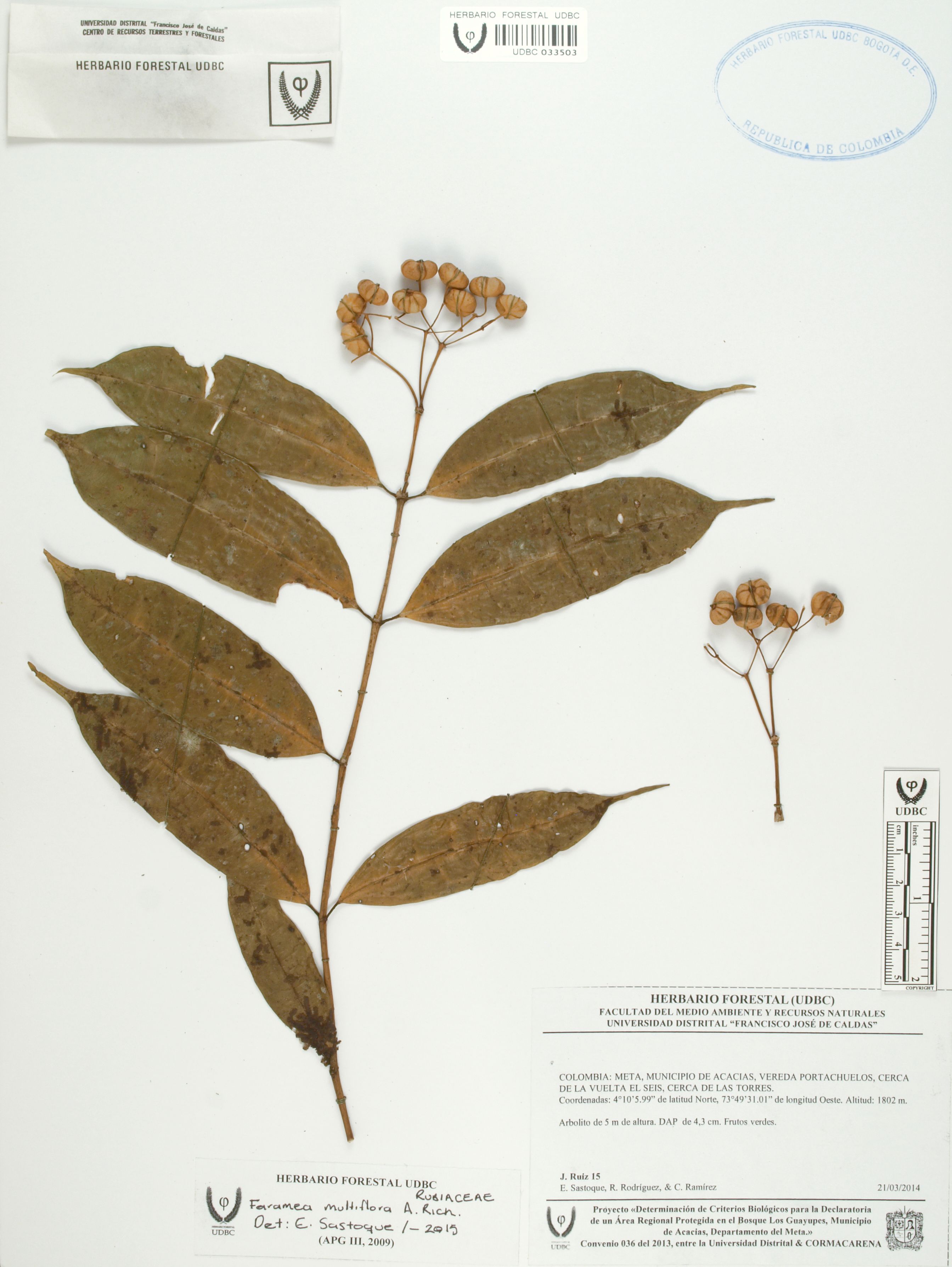 | dc.description | Fotografía del ejemplar Ruiz, J. 15, determinado como Faramea multiflora en el año 2015 | |
