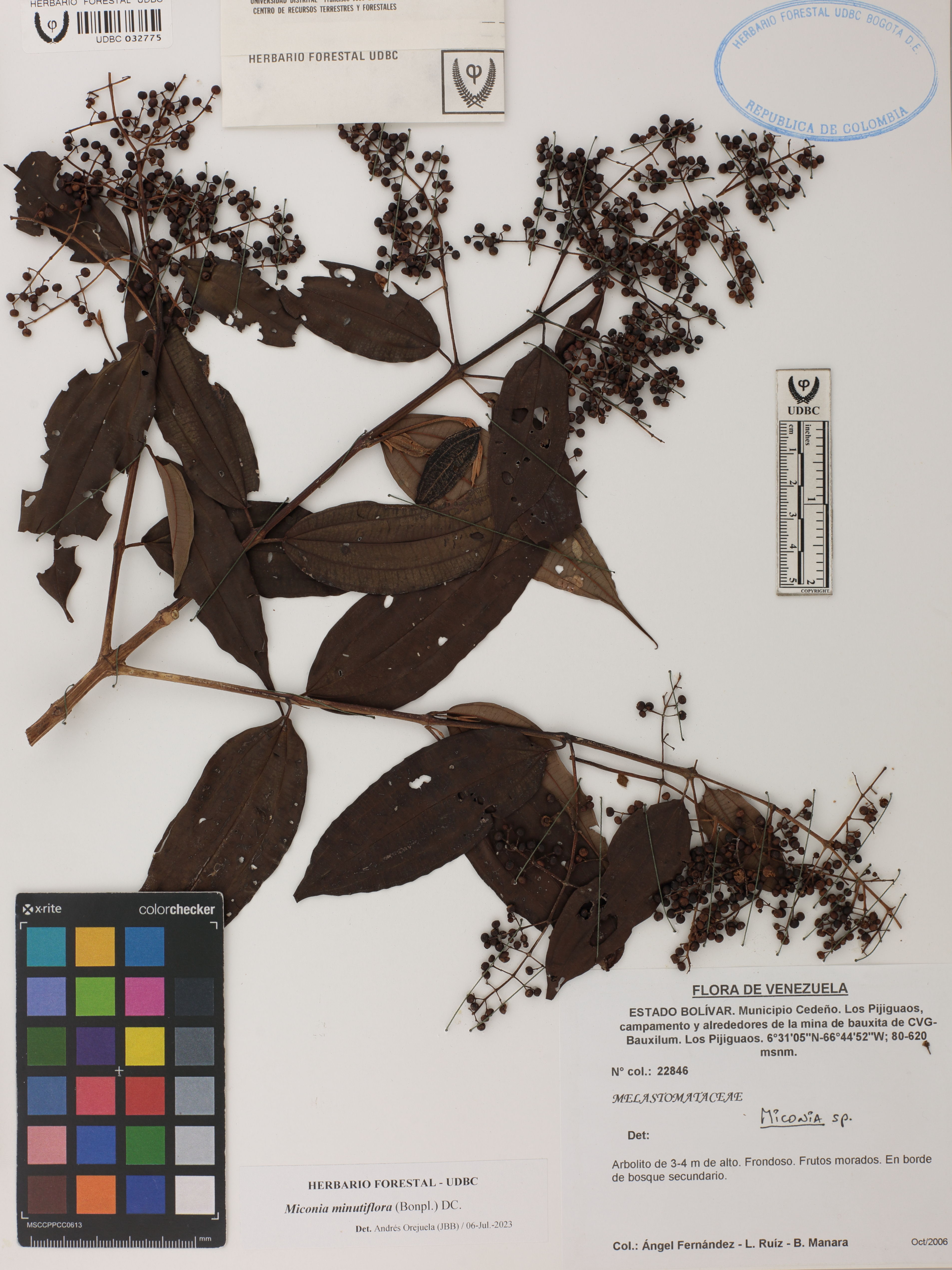 | dc.description | Fotografía del ejemplar Fernández, A. 22846, determinado como Miconia minutiflora en el año 2023 | |